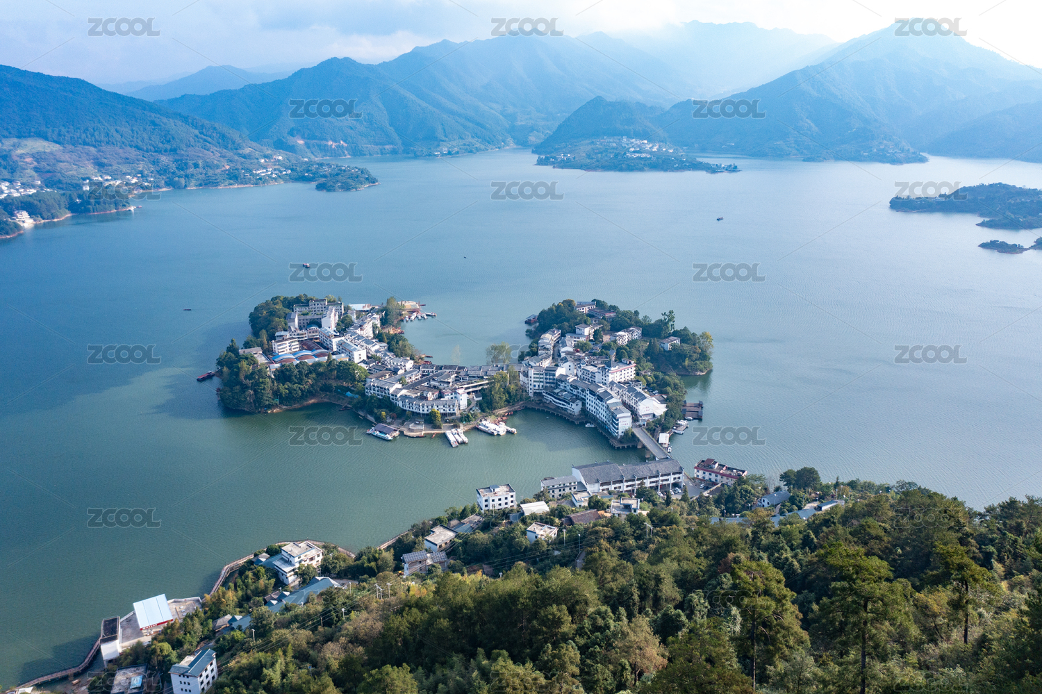 航拍湖南郴州资兴市黄草镇东江湖金牛岛景观