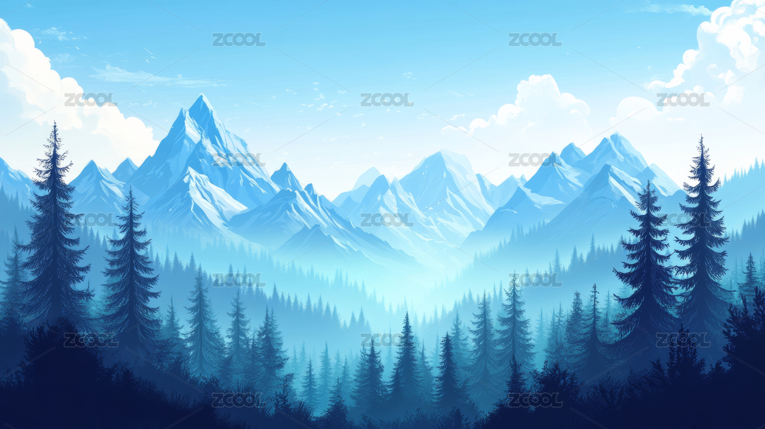 雪山森林插画背景