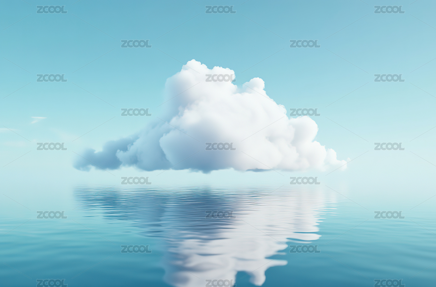 水天相接的粉色云与立方体