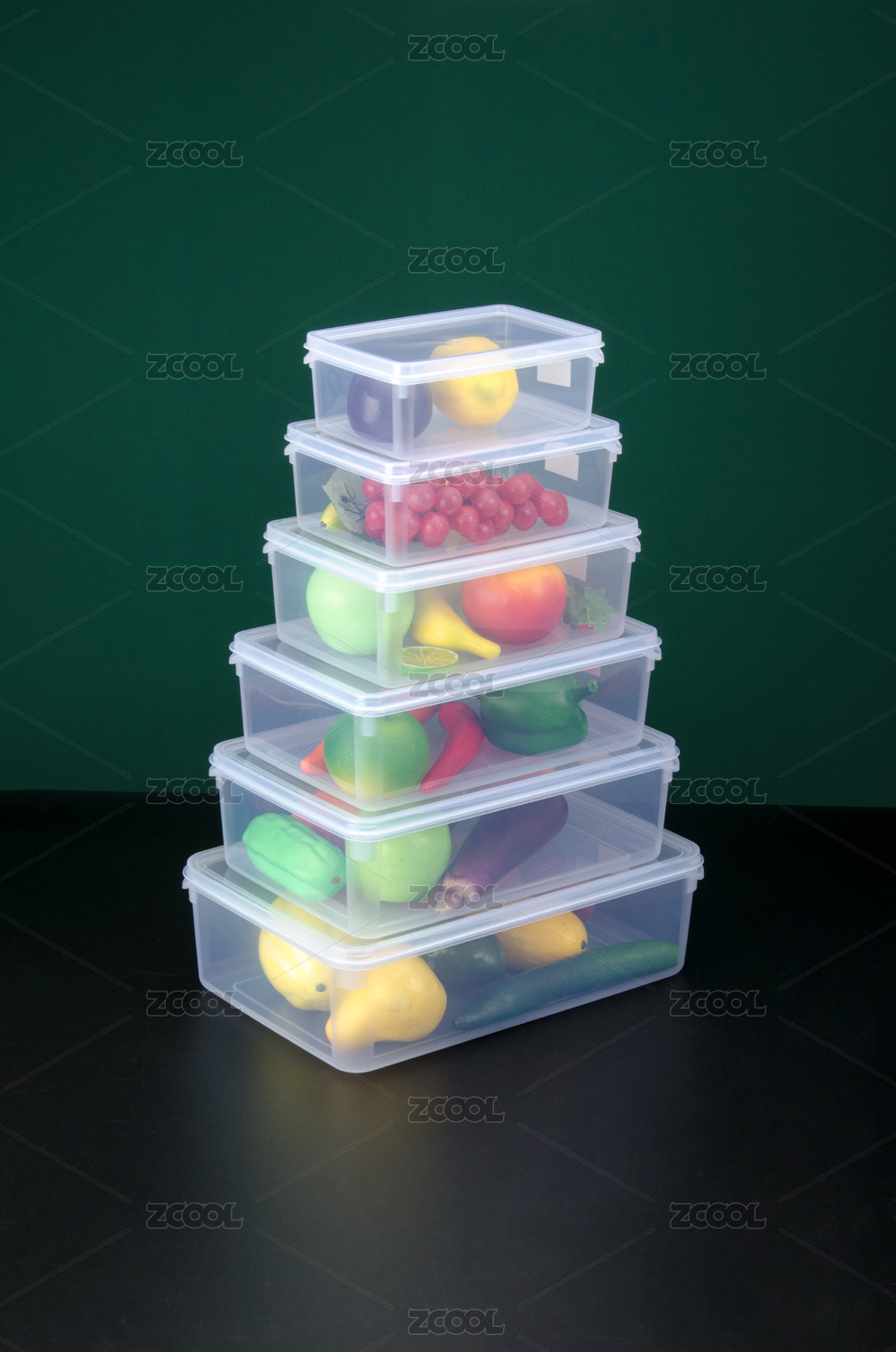 堆叠的透明塑料保鲜盒