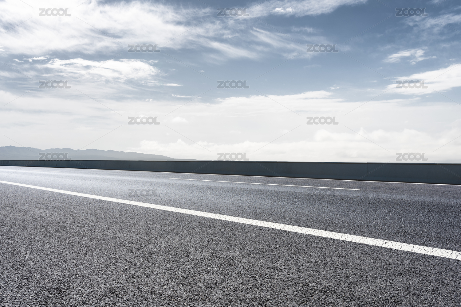 中国新疆蓝天下山脉自然风光和空的沥青道路