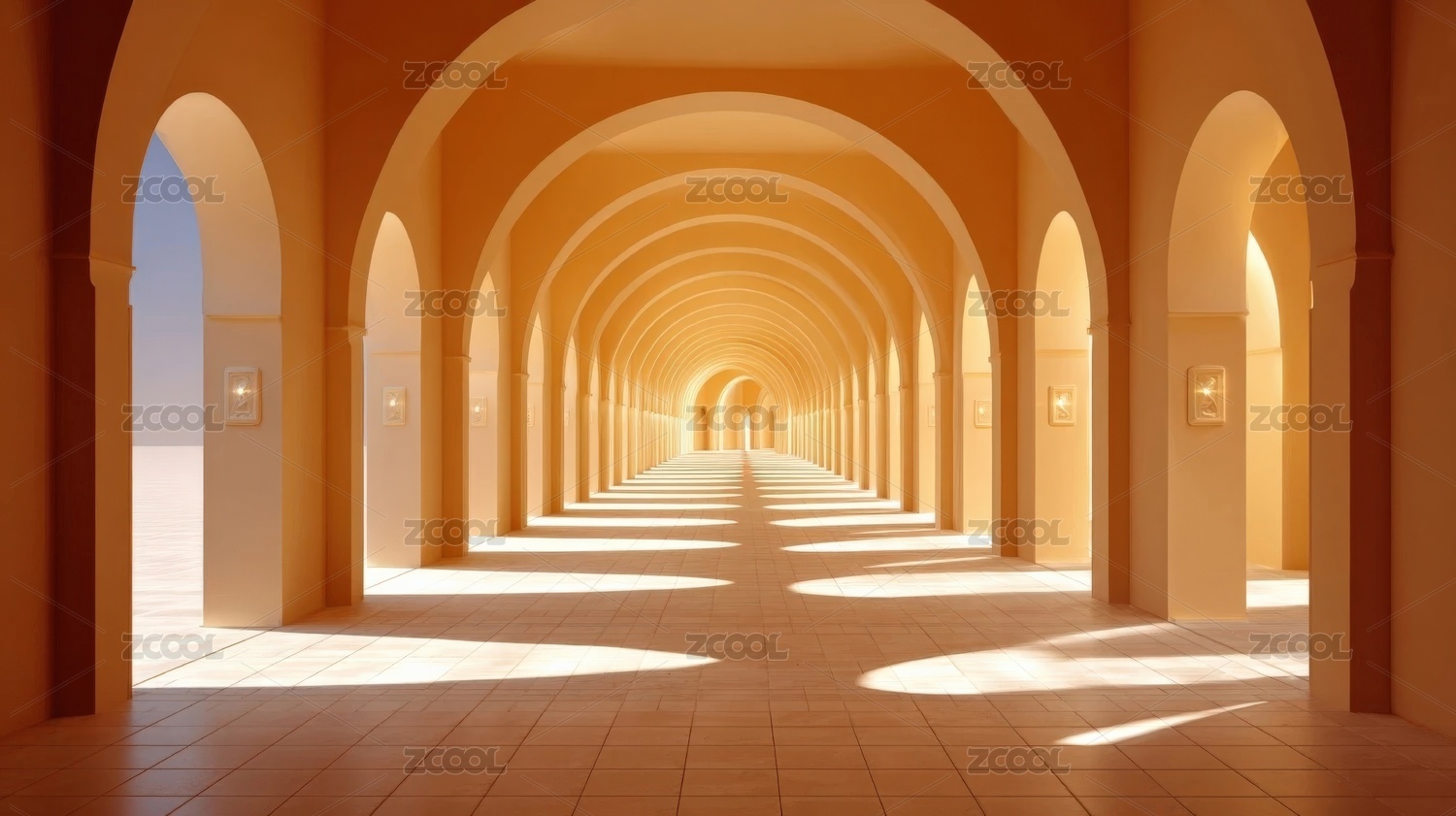 黄色拱廊光影走廊