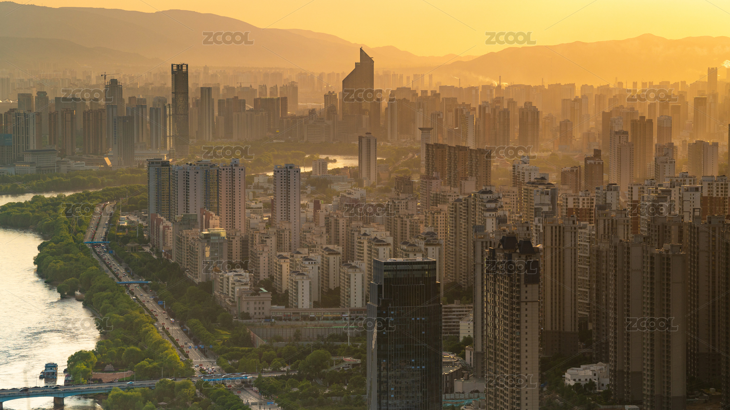 城市,风景,黄河,日落,兰州,甘肃,西北,城市天际线,高角度,车