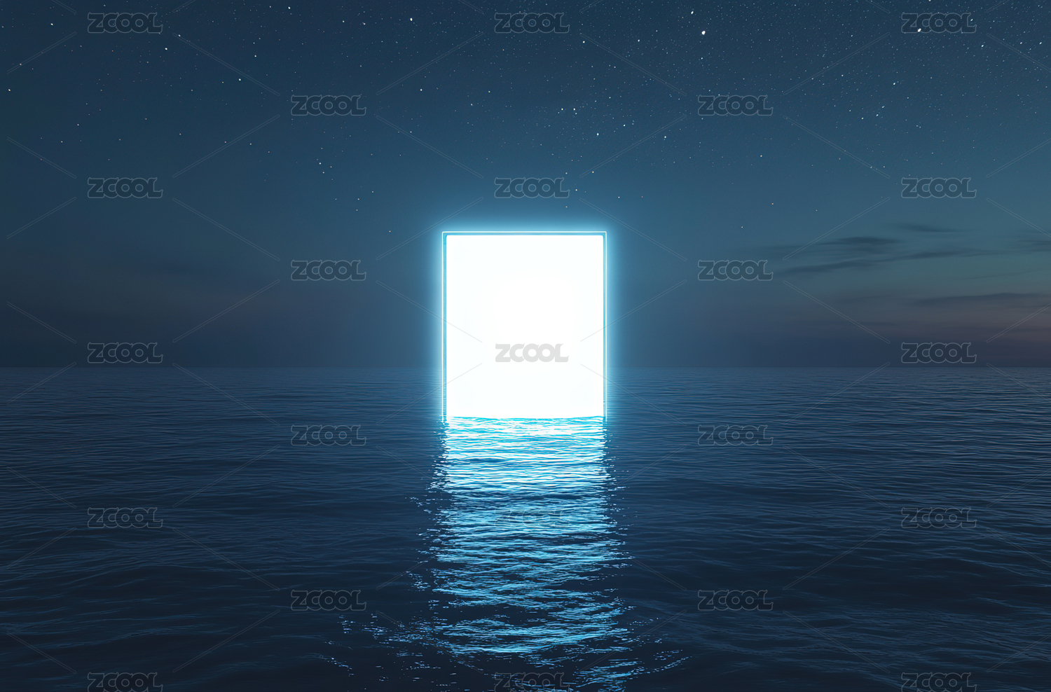 星空下水面上的发光门