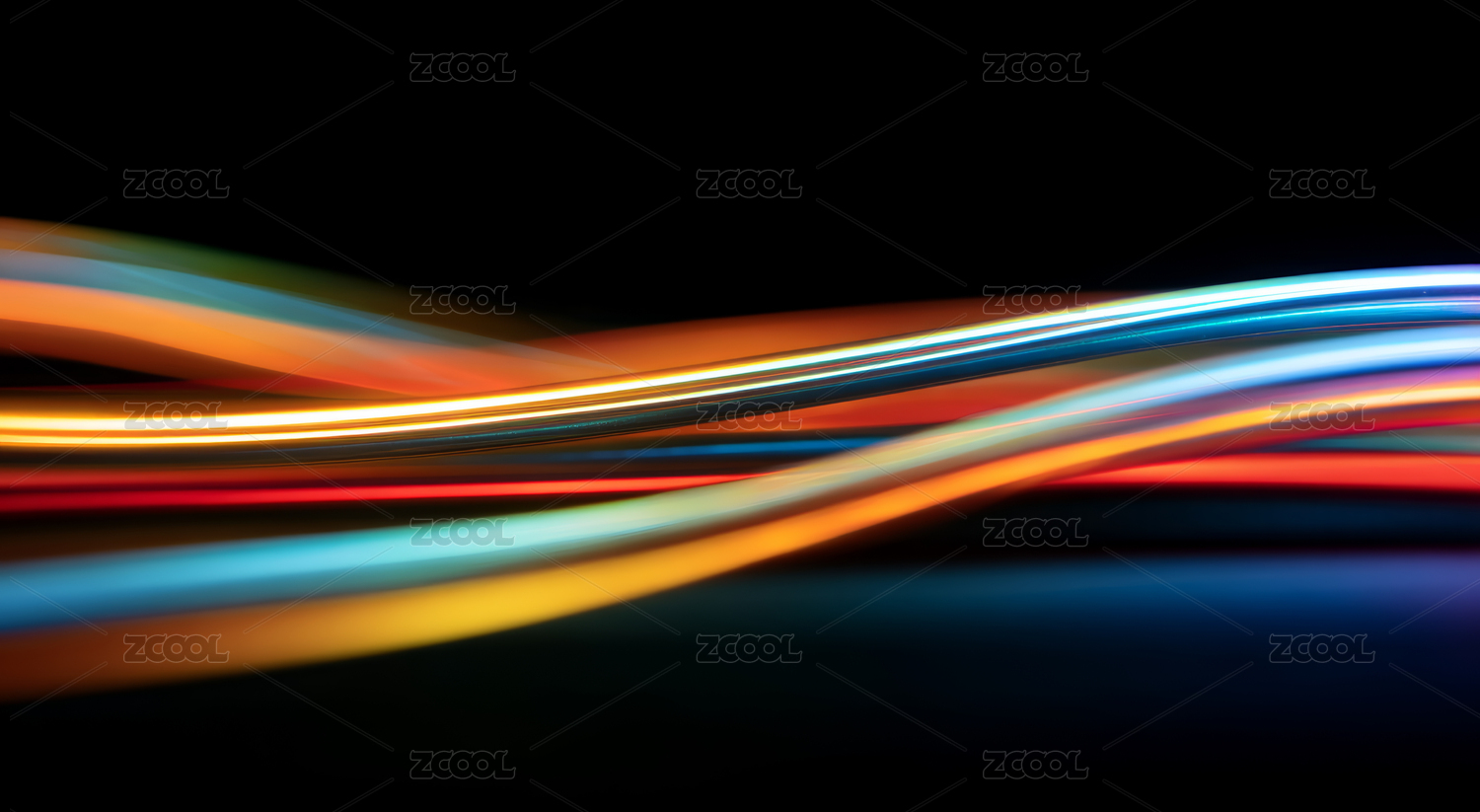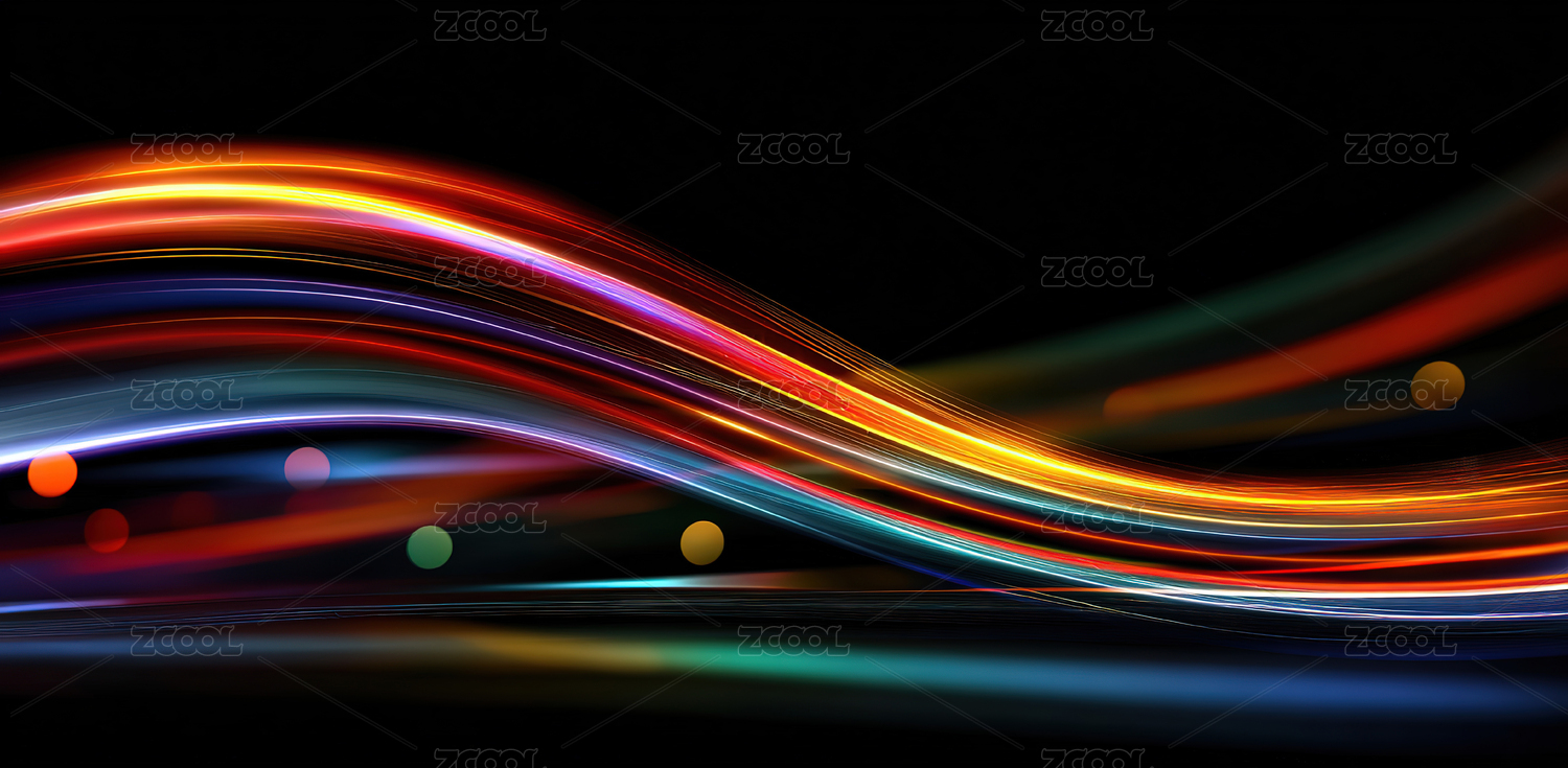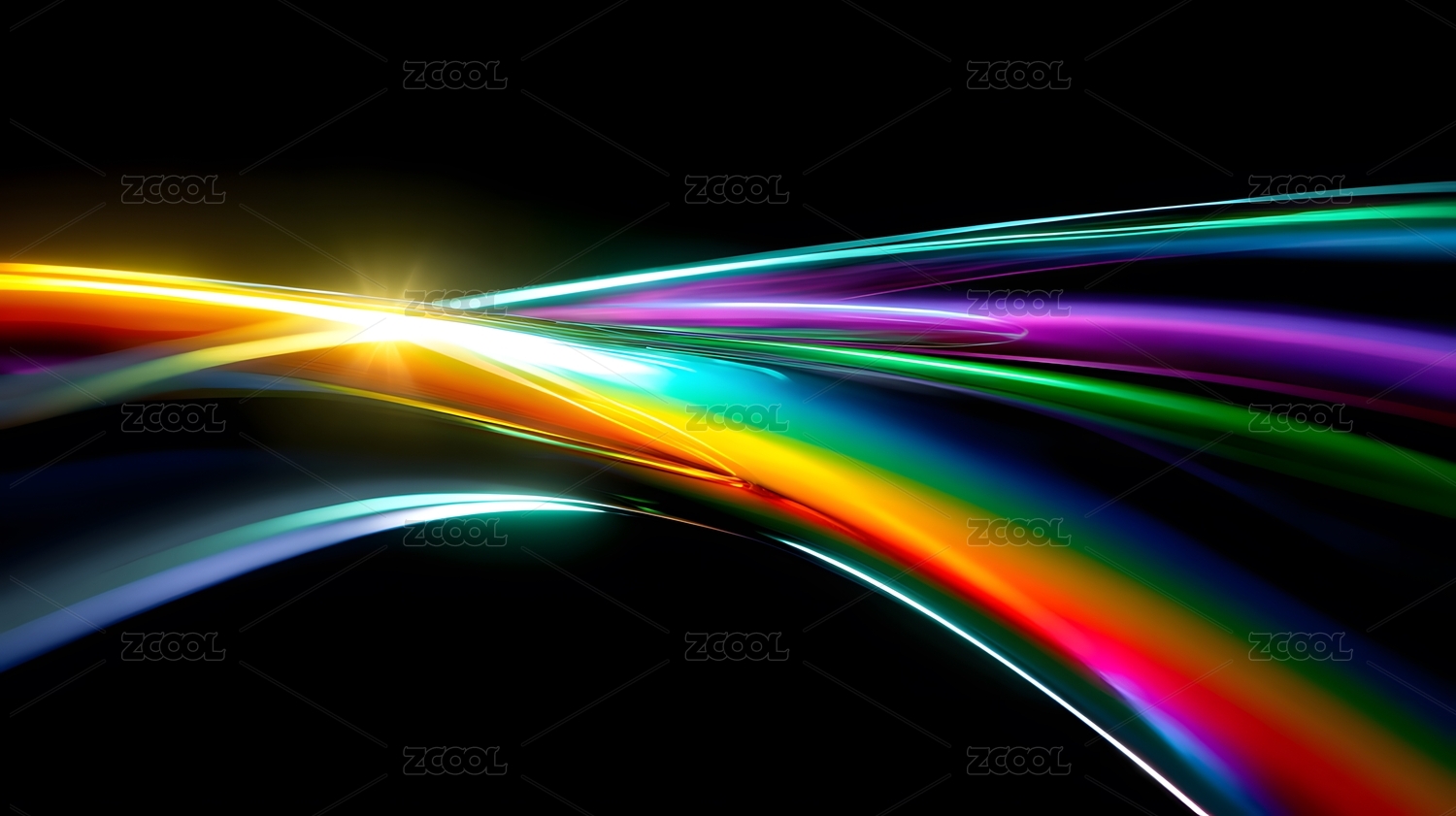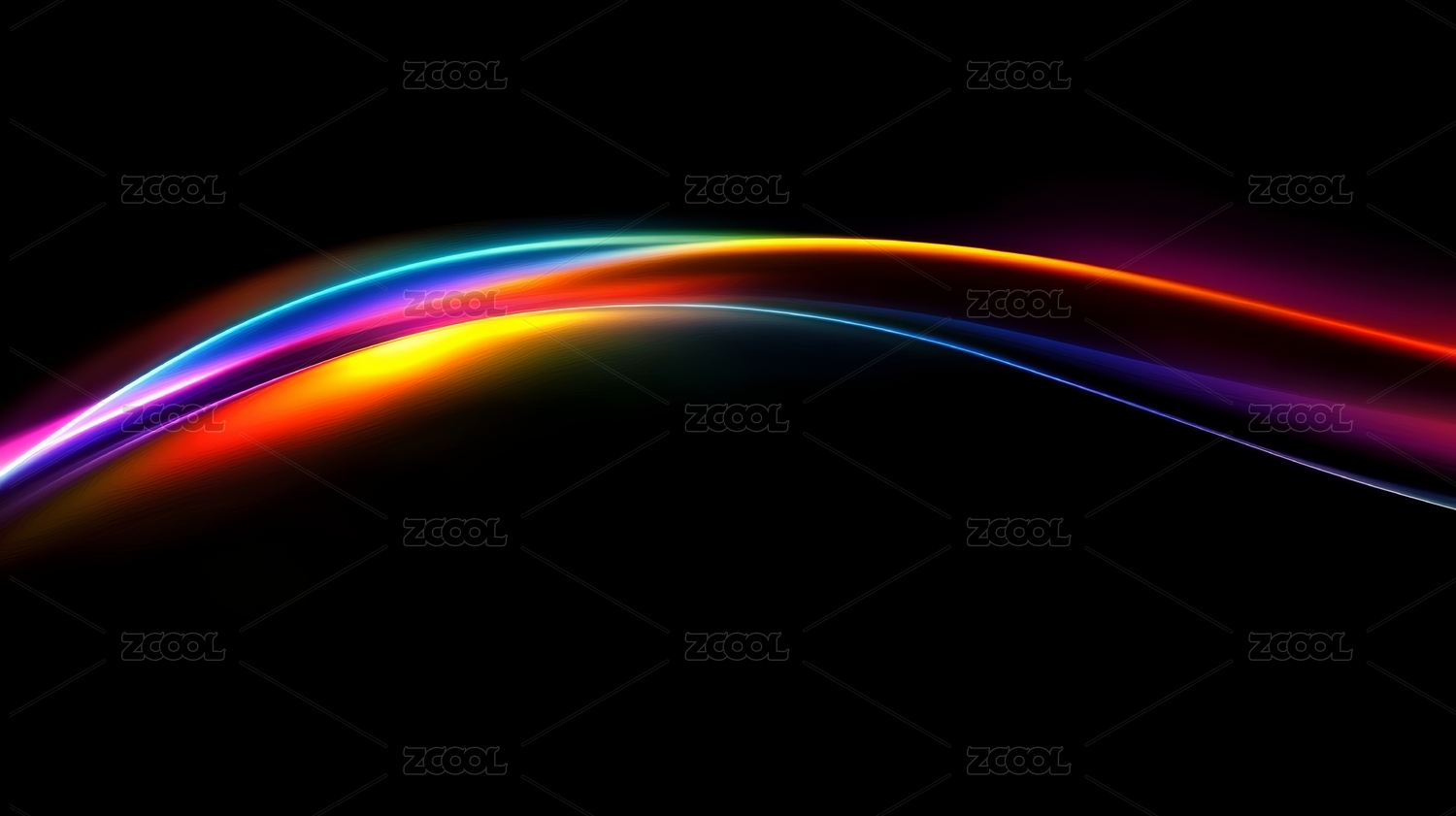 色彩斑斓的霓虹光谱在黑色背景上流动