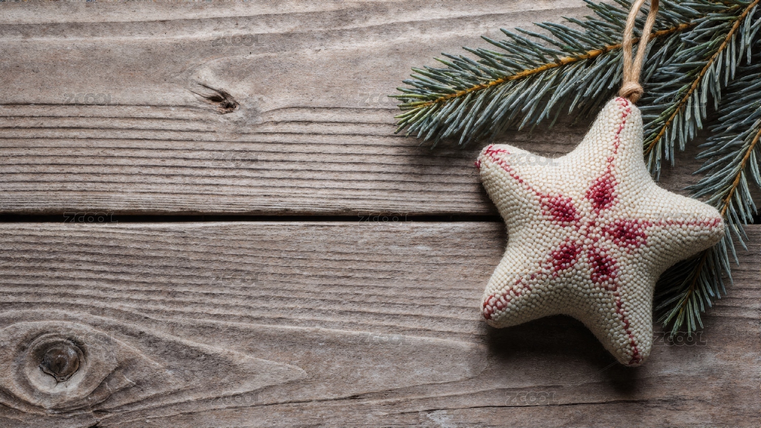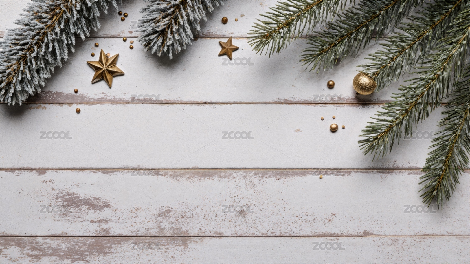 正上方拍摄的圣诞装饰品和桌子上的礼品盒