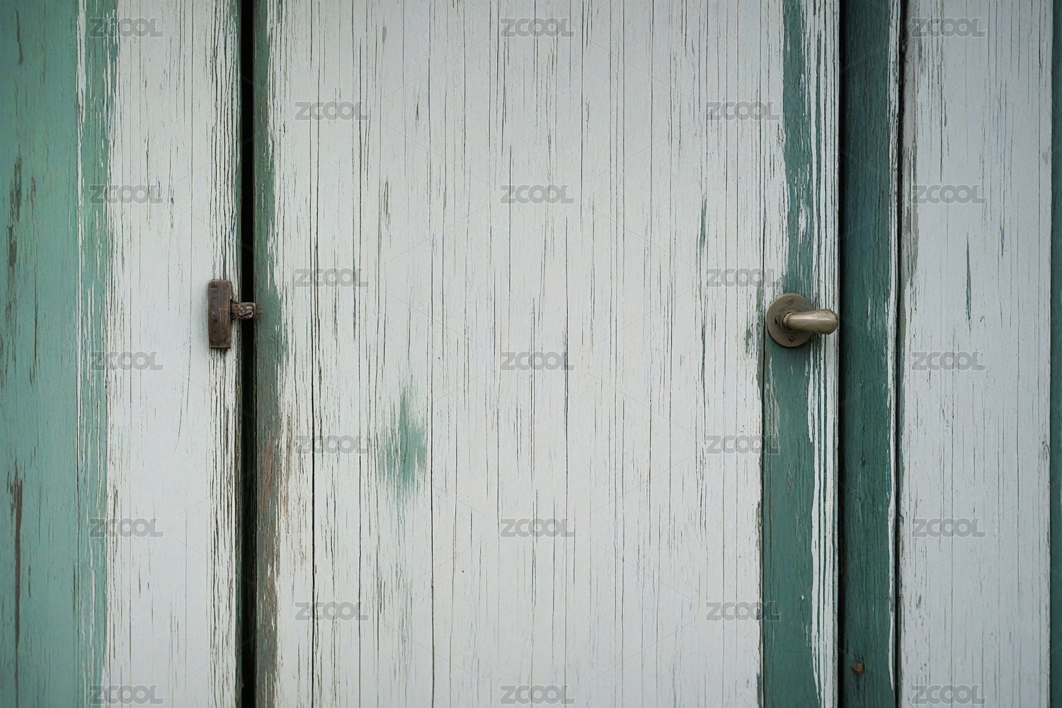 一扇年代久远的的古朴斑驳蓝色油漆仓库木门