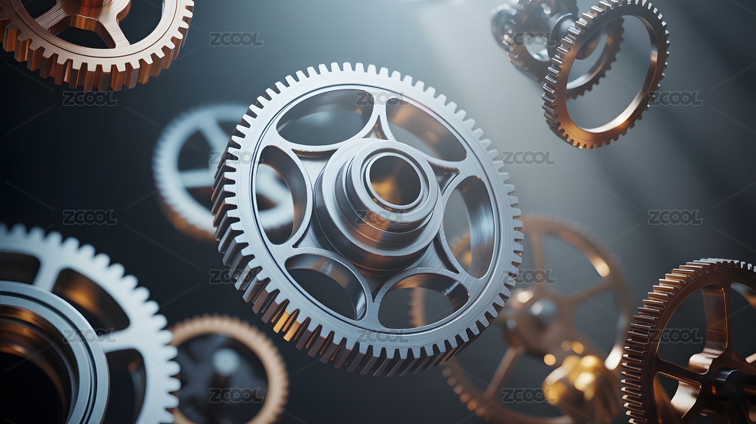 现代工业机械齿轮精密运转,活力蓝黄风格