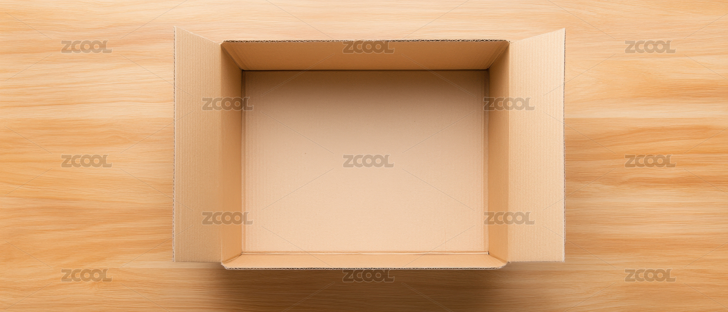 空纸箱放在木质桌面上