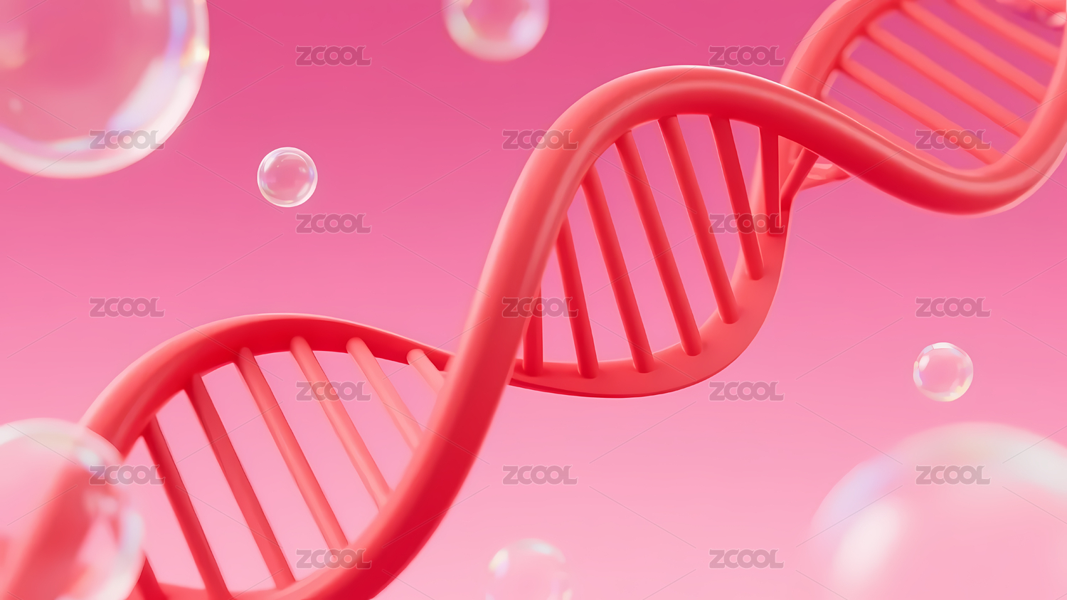 透明粉色DNA与气泡