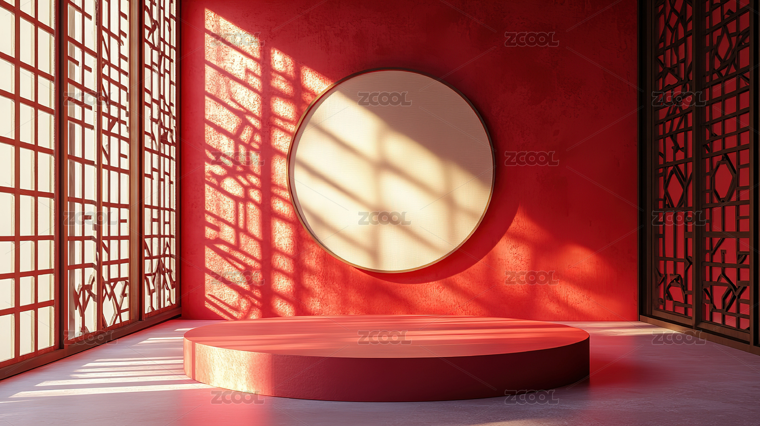 背景,红色,产品展台,华贵,三维图形,插画,舞台,室内,展览,新年