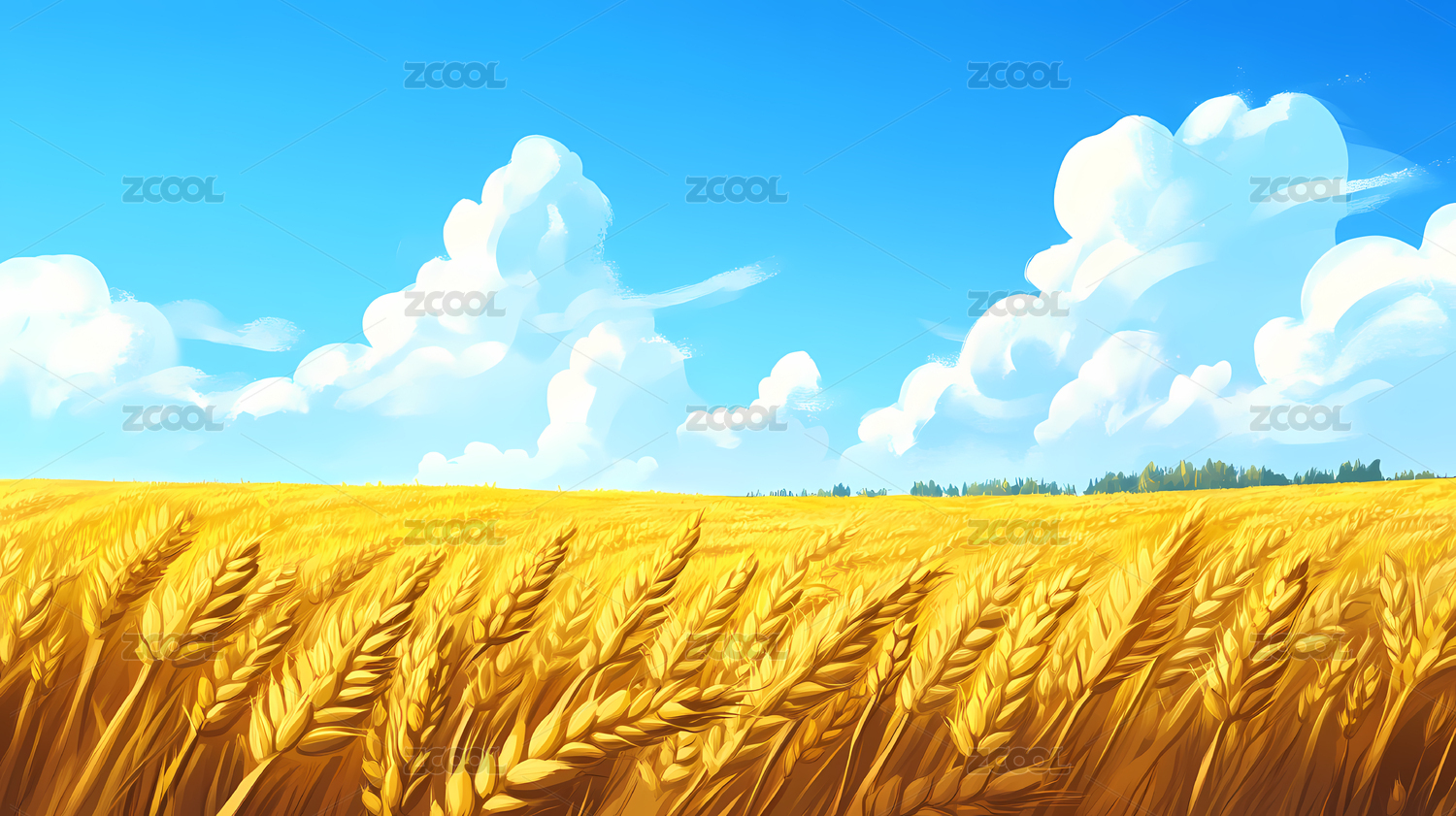 立秋节气秋天农业收获农田粮食成熟秋收插画