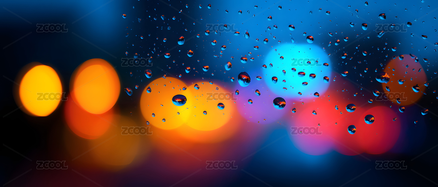 玻璃窗外的水珠多彩背景