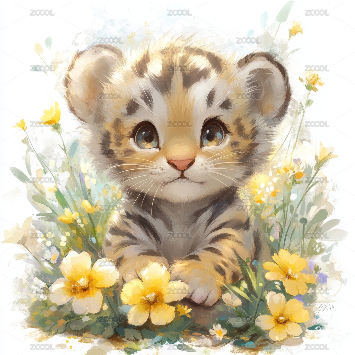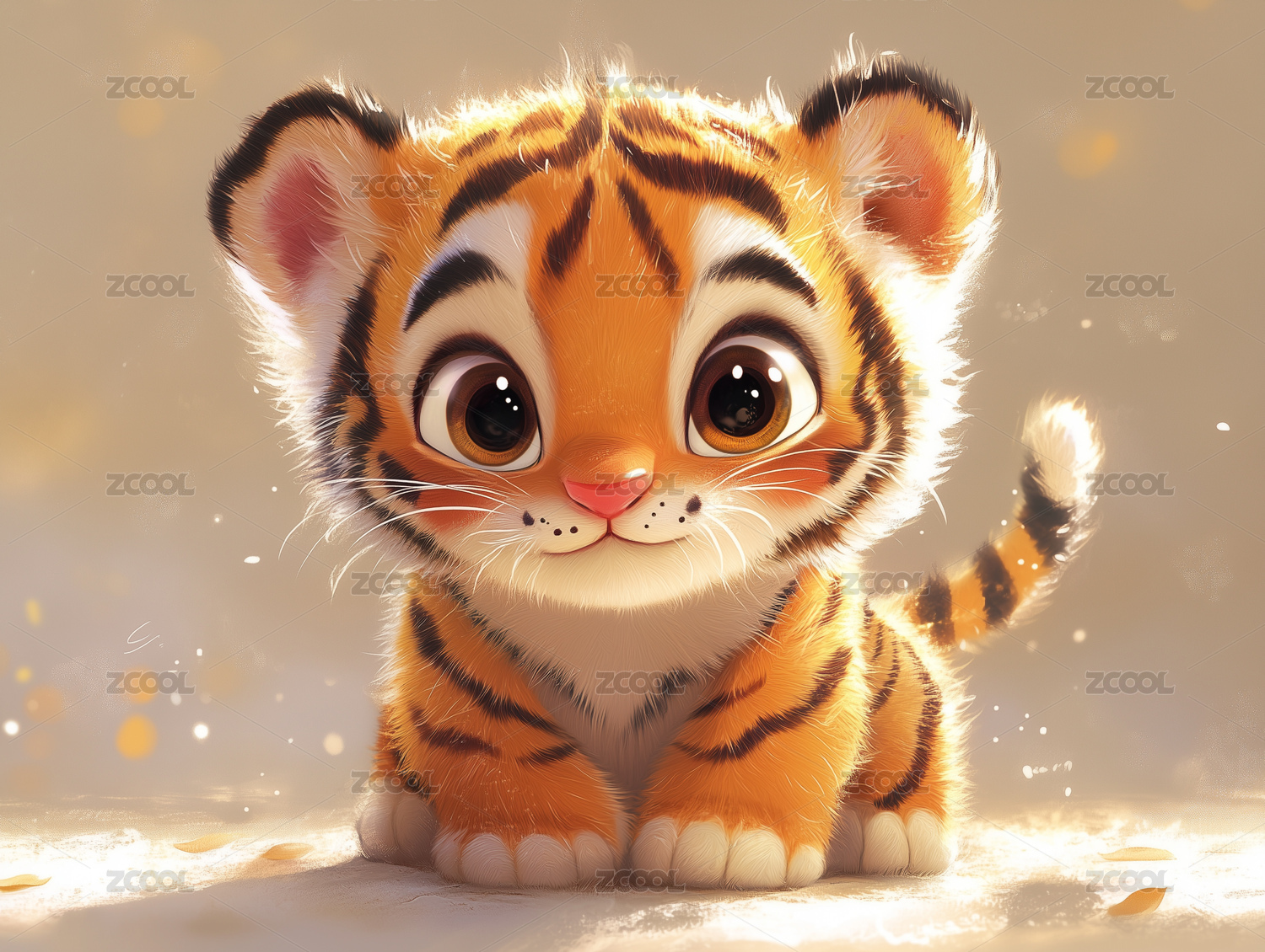 老虎虎年可爱唯美野生动物3D卡通插画壁纸