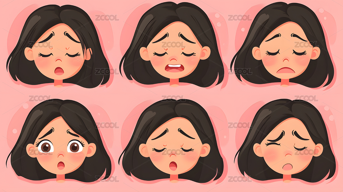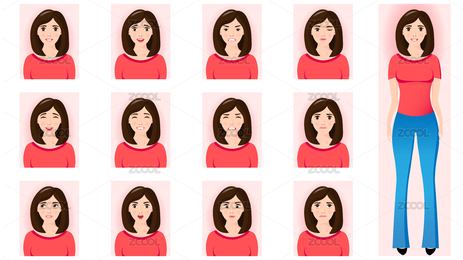 卡通人物设计女孩表情包设计萌萌哒矢量图