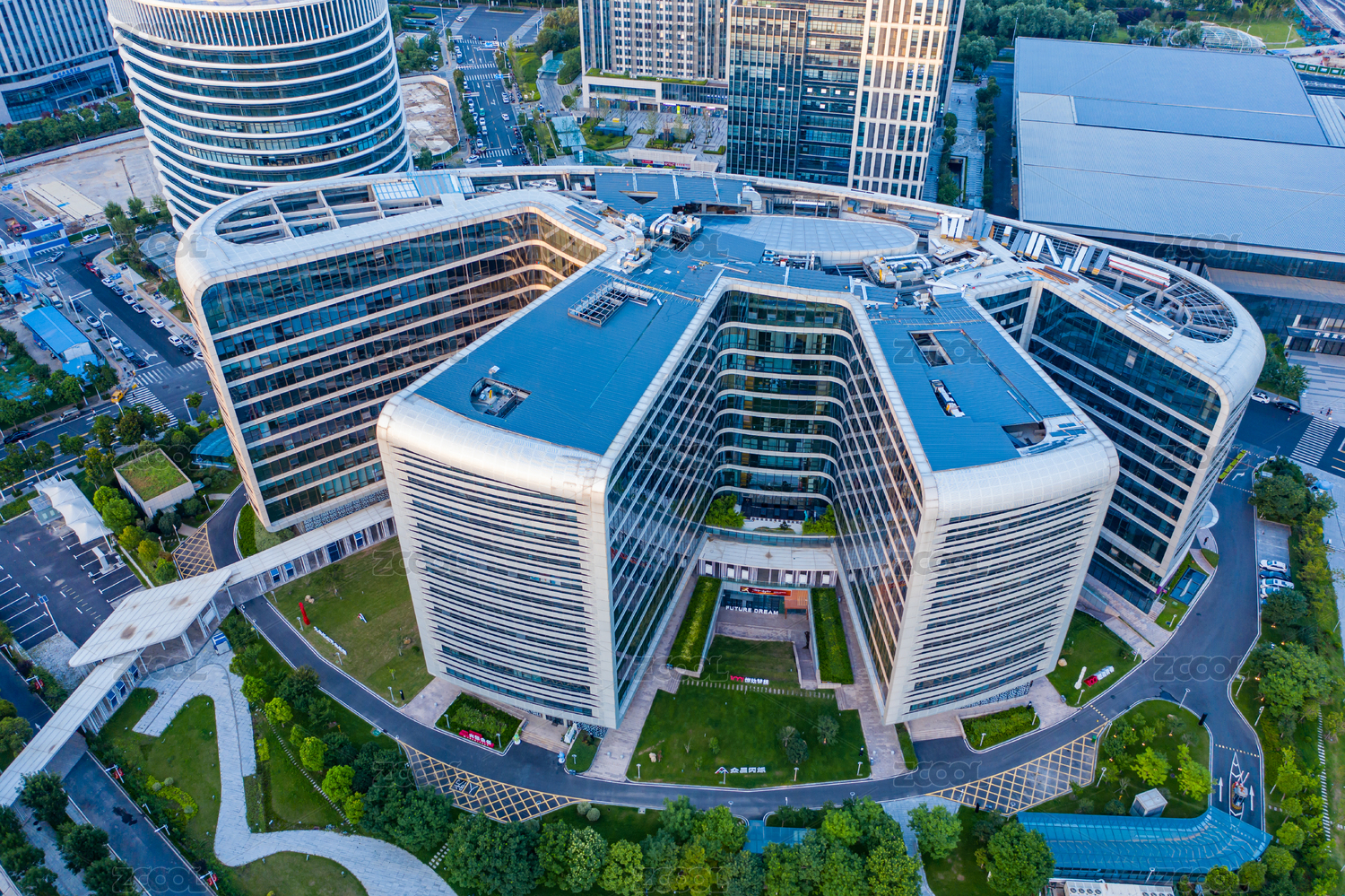 航拍河南郑州龙子湖智慧岛大厦爪子形状建筑