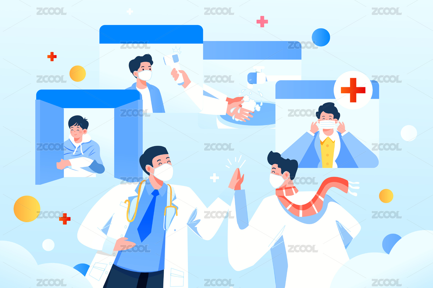 医疗人物抗疫扁平矢量概念运营手绘插画