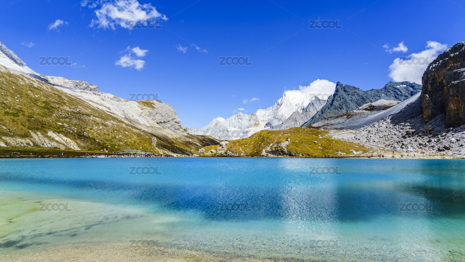 稻城亚丁 牛奶海和旁边的雪山 局部