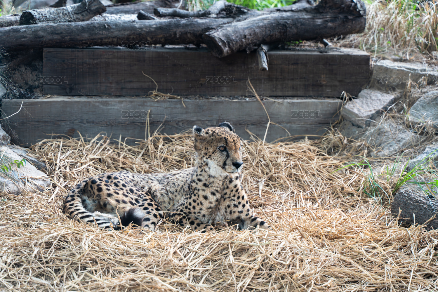 花豹猎豹在草堆休息