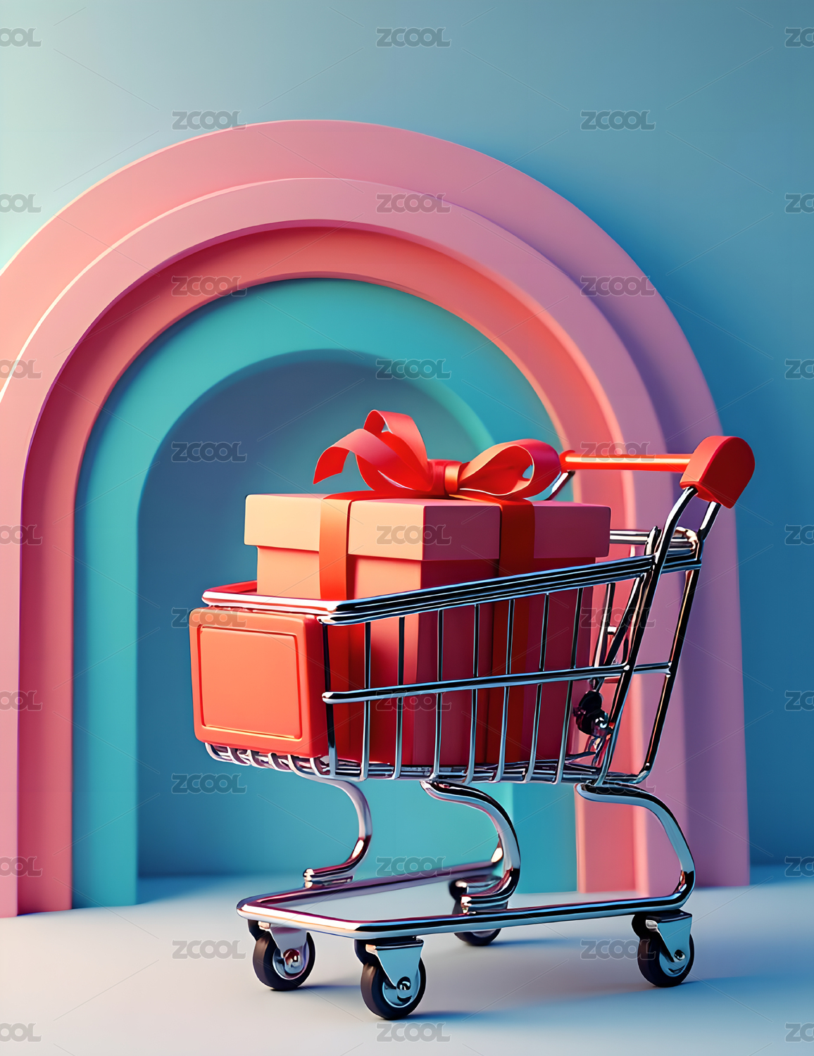 剪纸,彩虹,购物车,礼盒,电商,展台,设计,展示,购物,热销