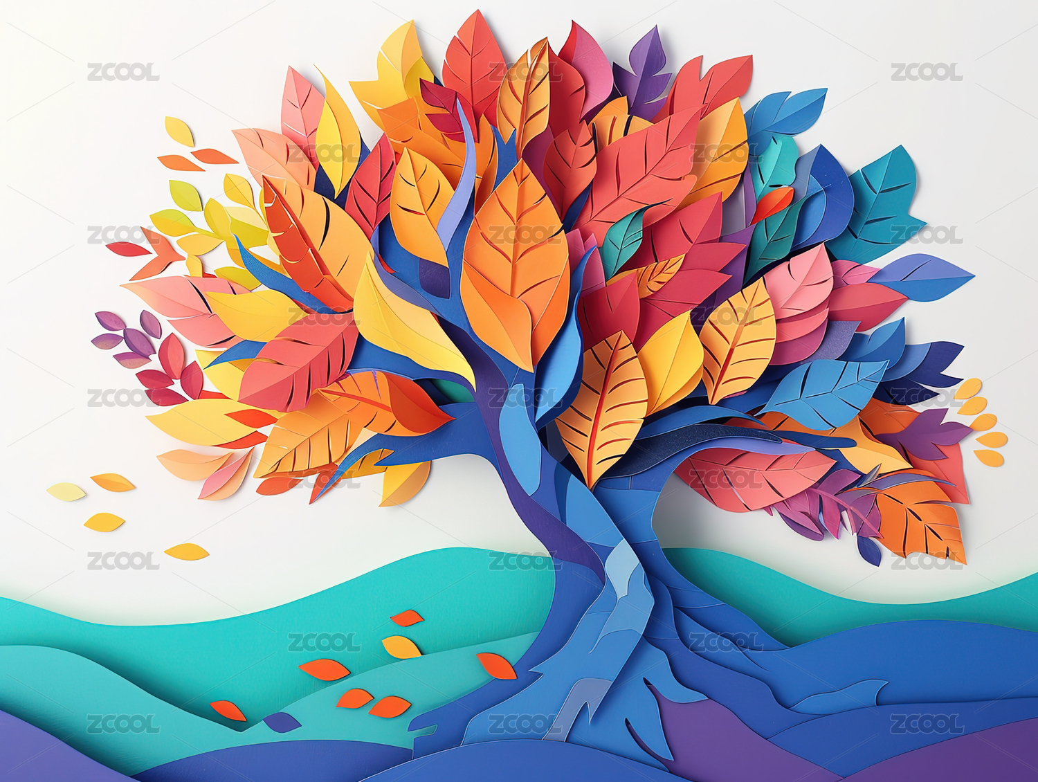 抽象树叶秋季意境图