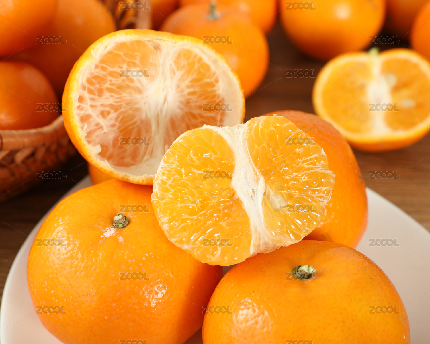 木底上放着切开的红橘