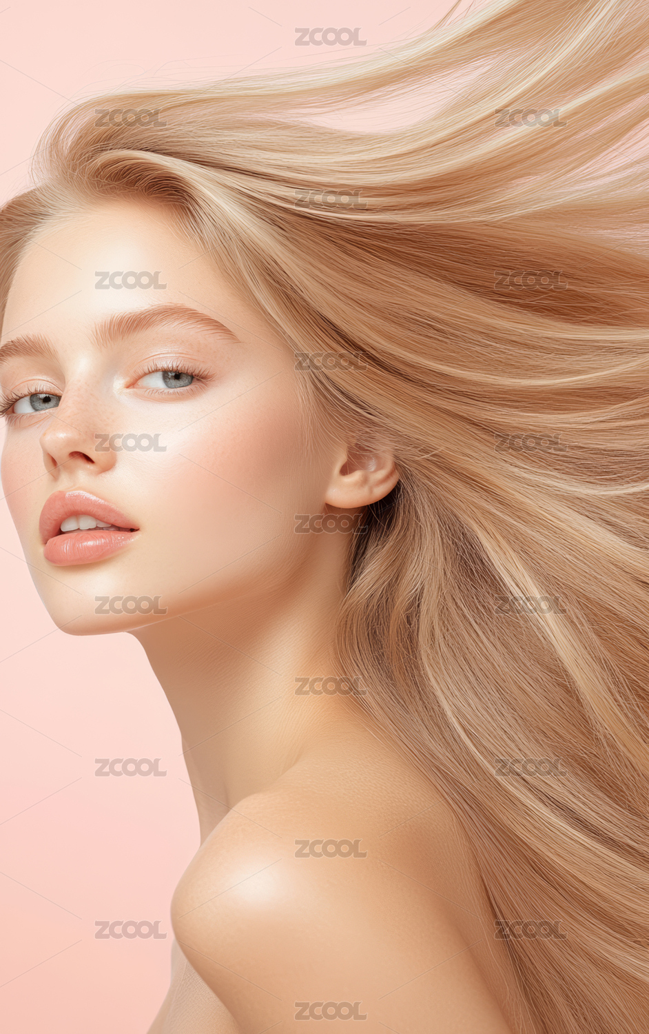 长发飘逸的欧美年轻女性艺术形象