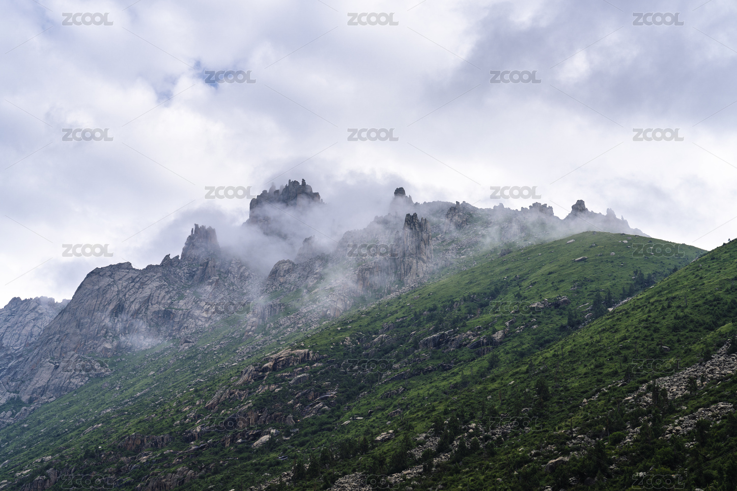 中国西藏雅鲁藏布江峡谷高山晨雾