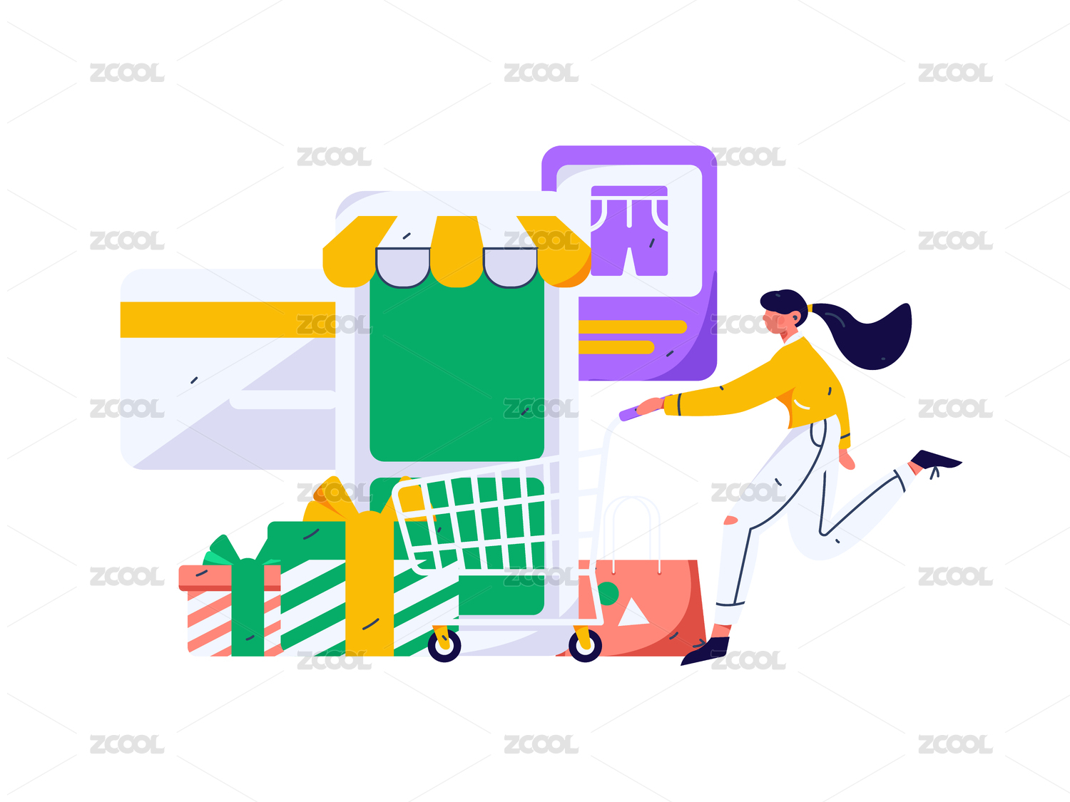 女人,购物,推车,礼品,产品,彩色,在线,商店,网站,屏幕