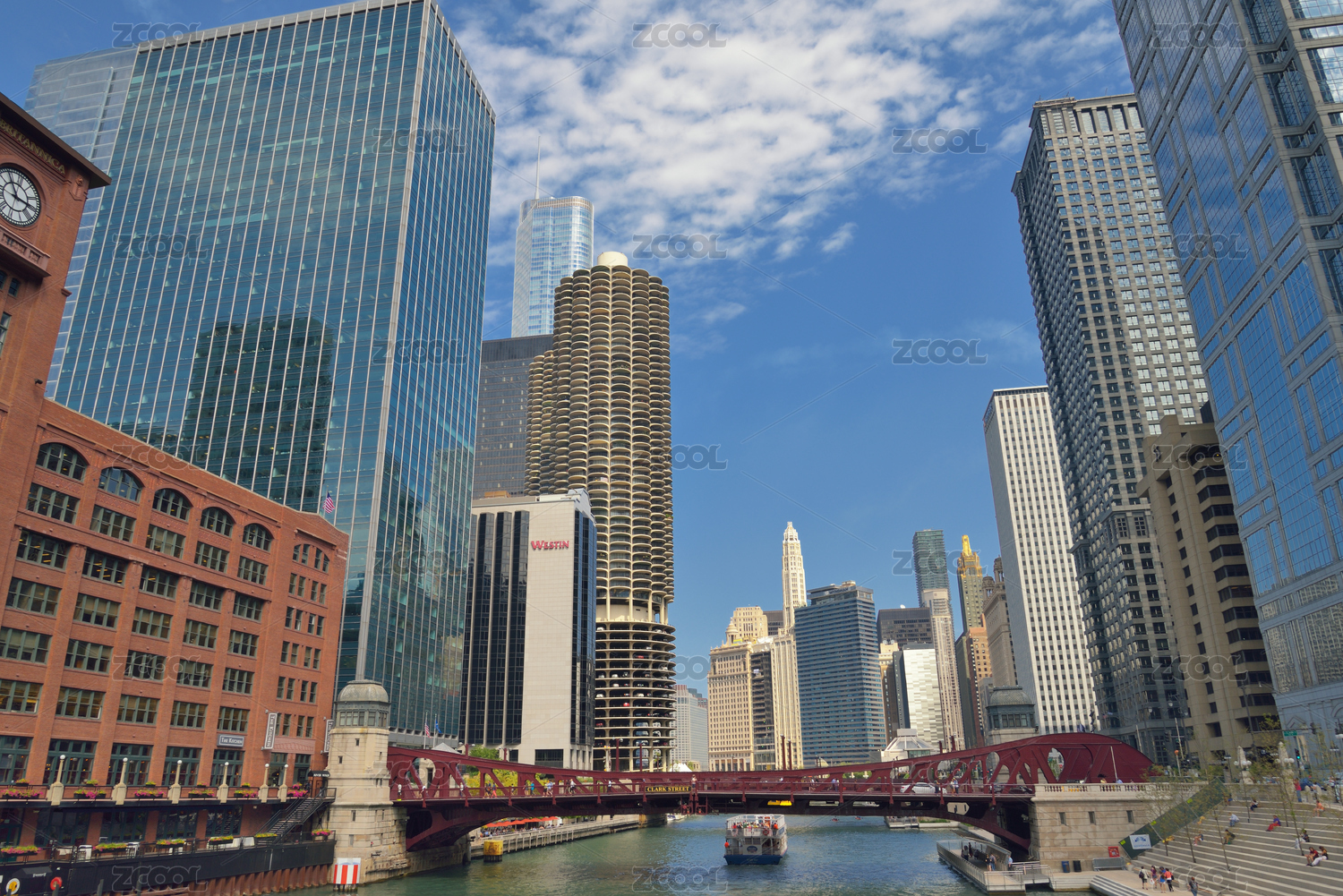 芝加哥河上的铁桥及建筑群