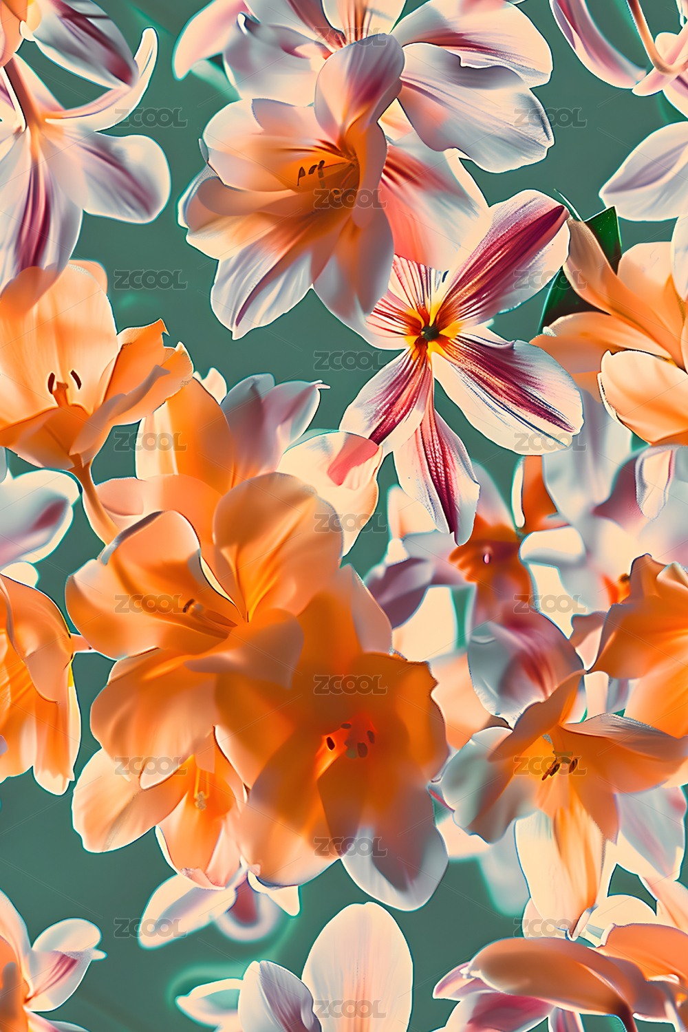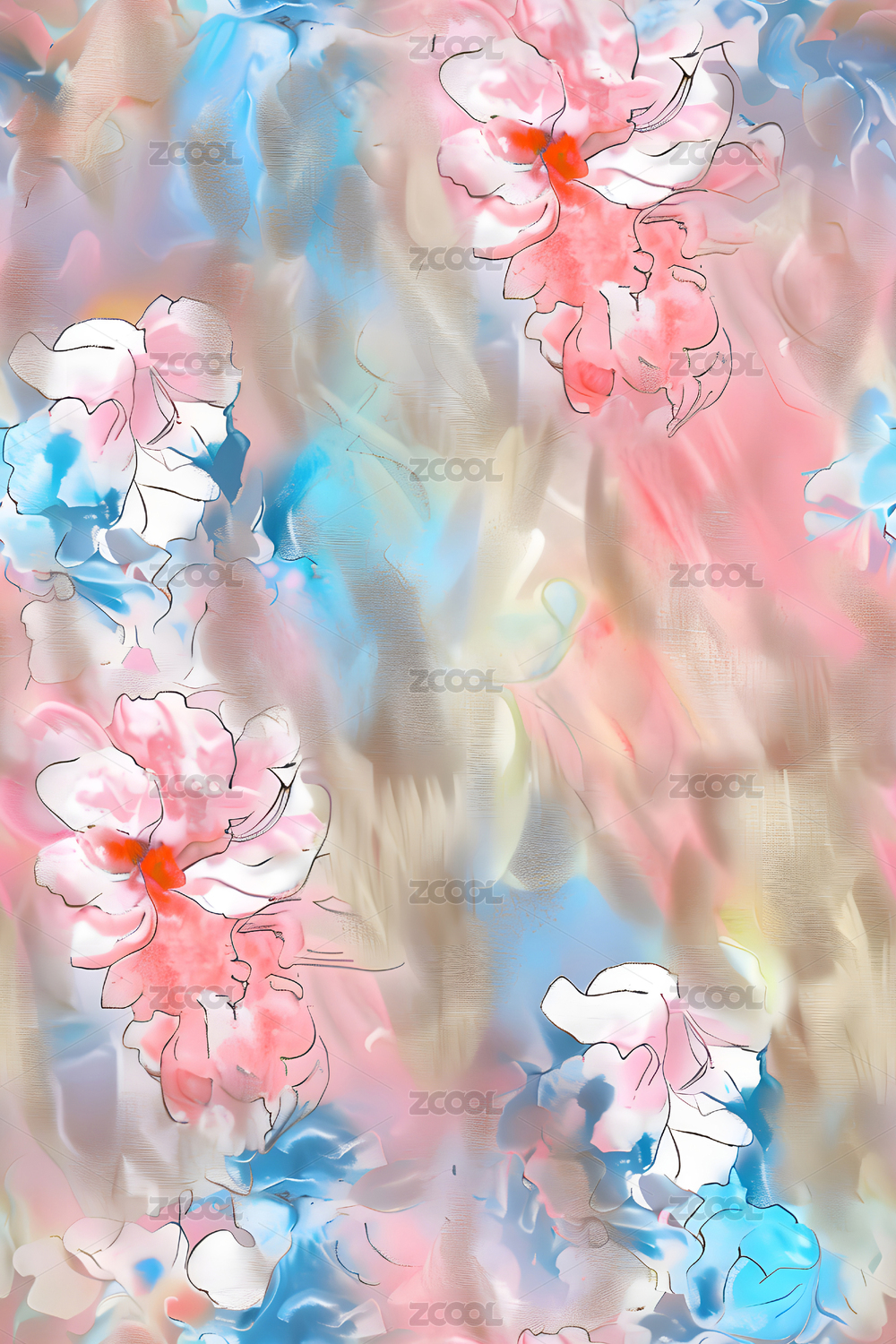 组合型花卉,AI,3D,几何,抽象,数码印花,纺织