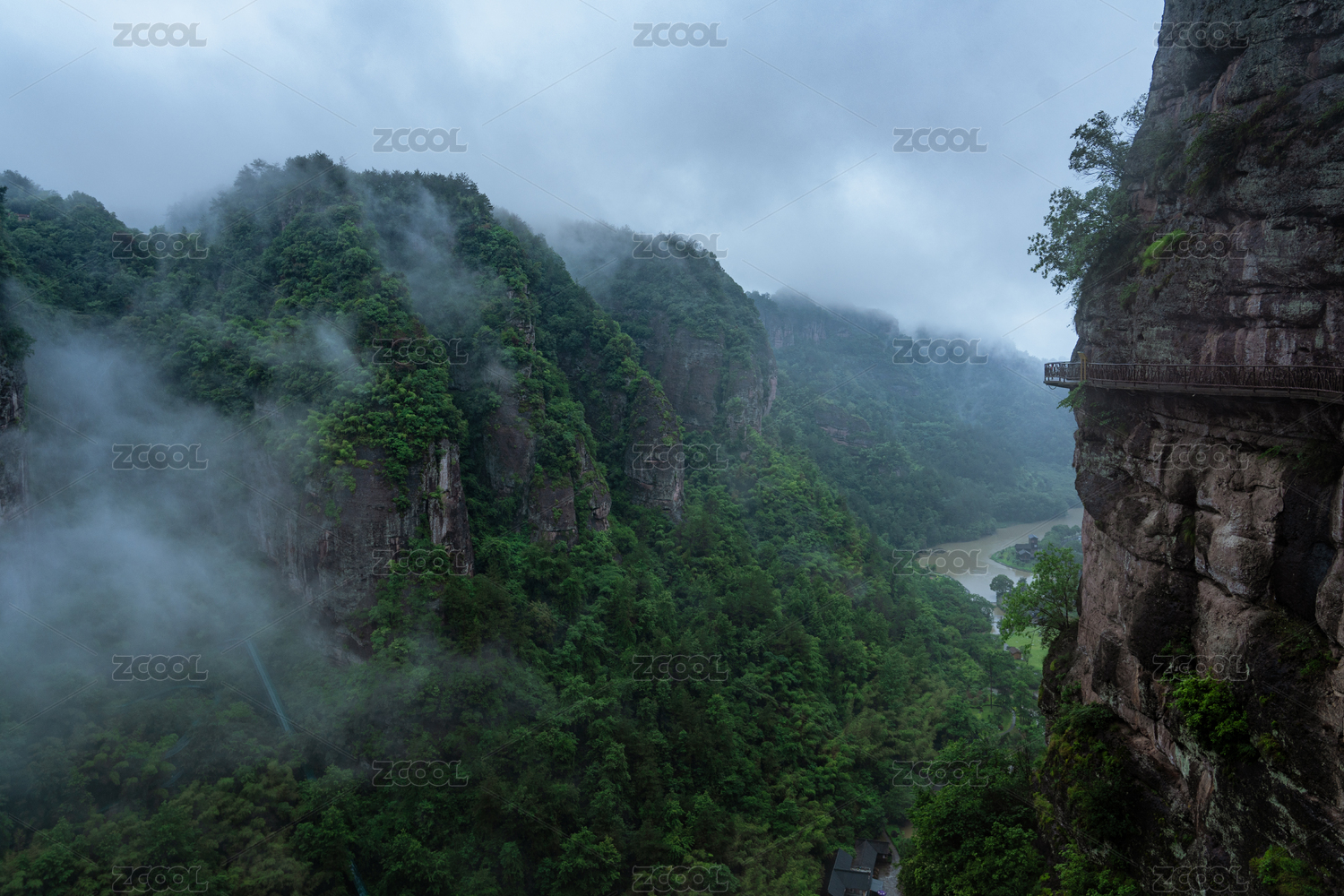 中国福建省武夷山丹霞地貌观景台栈道自然风光