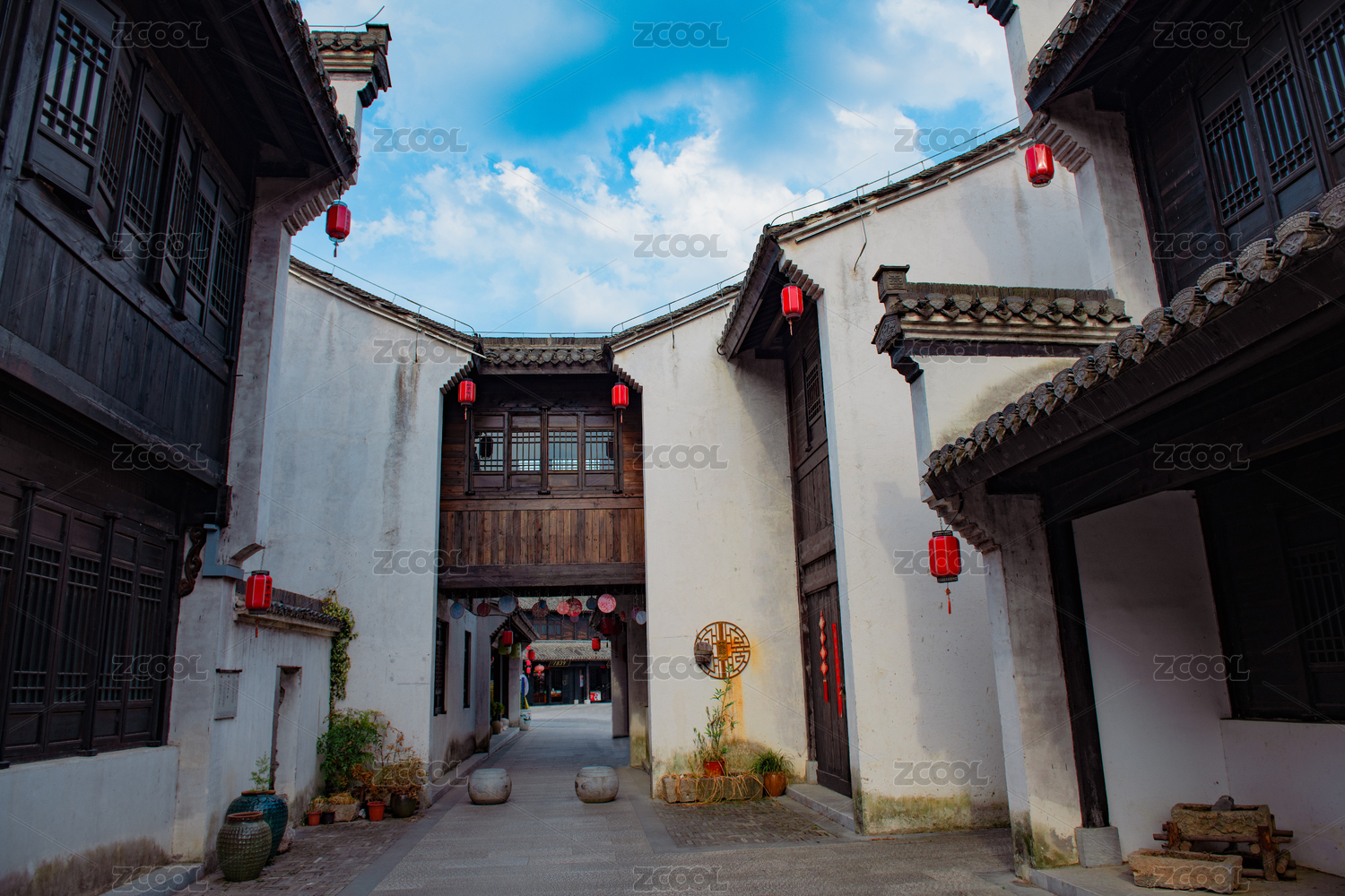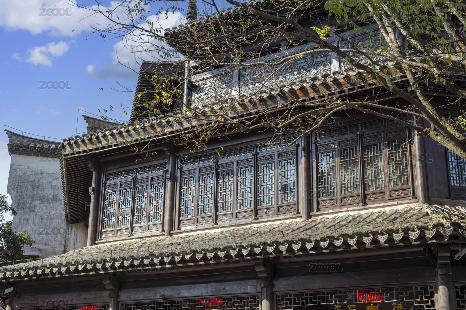 浙江金华古子城 阳光斑驳 树影映在白墙上