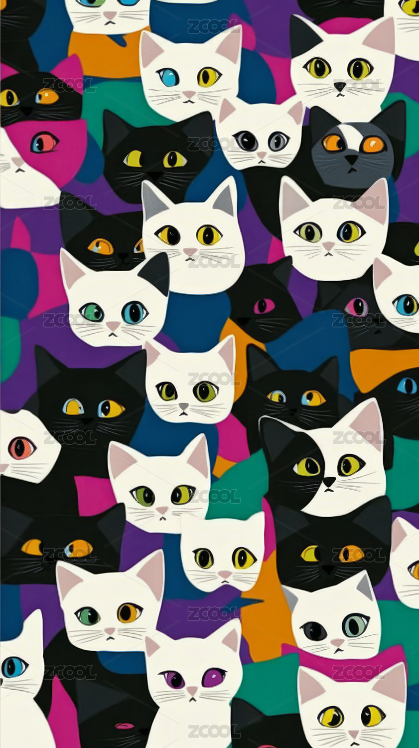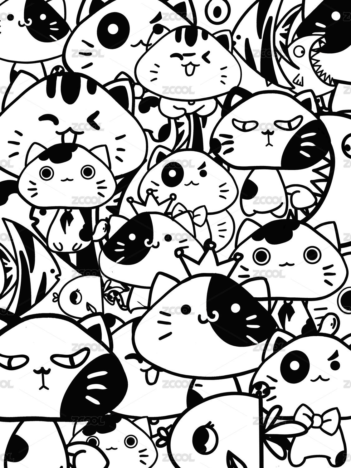 卡通可爱猫咪平铺图