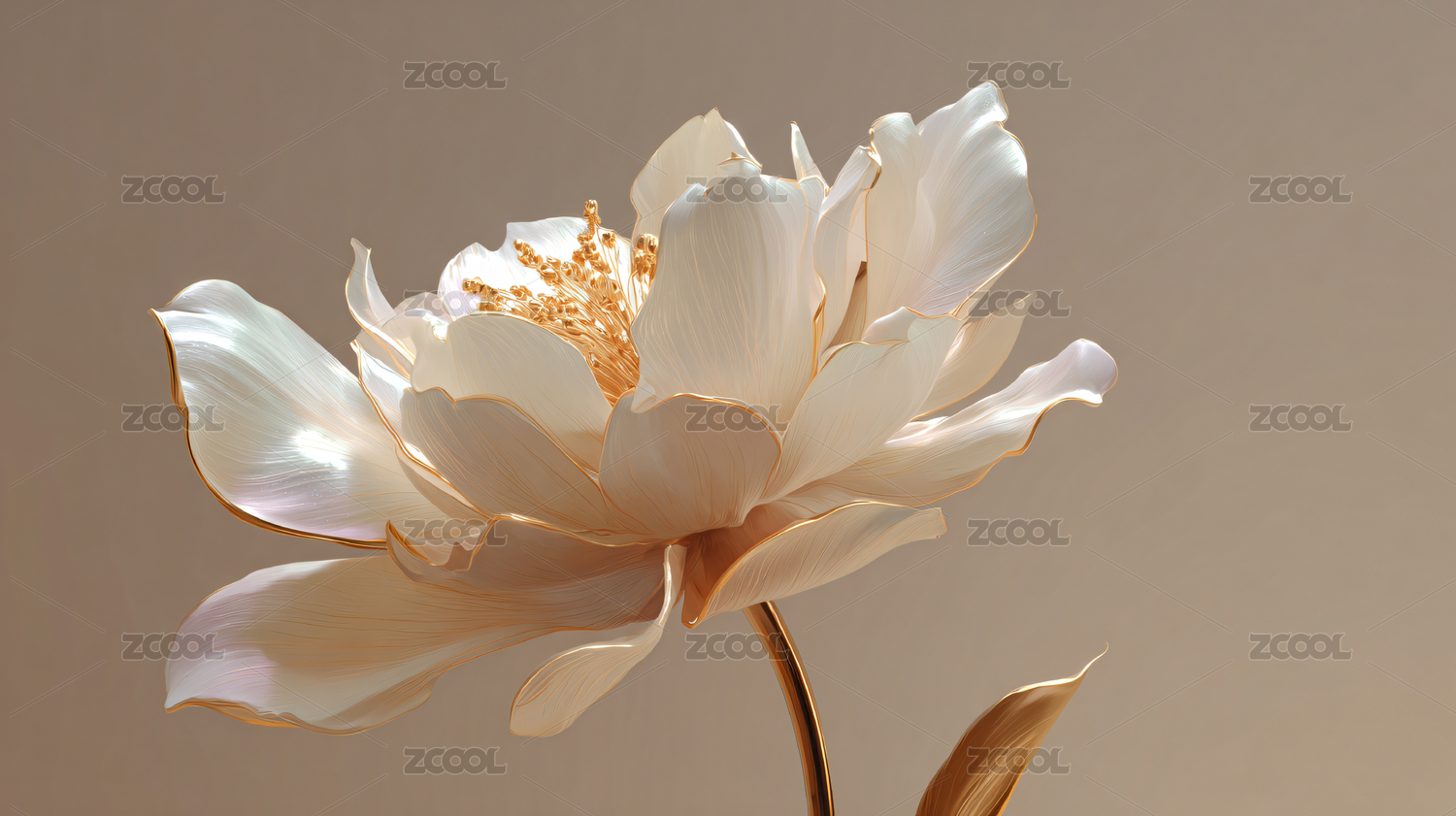 数码科技冰雕白色牡丹花插画海报背景