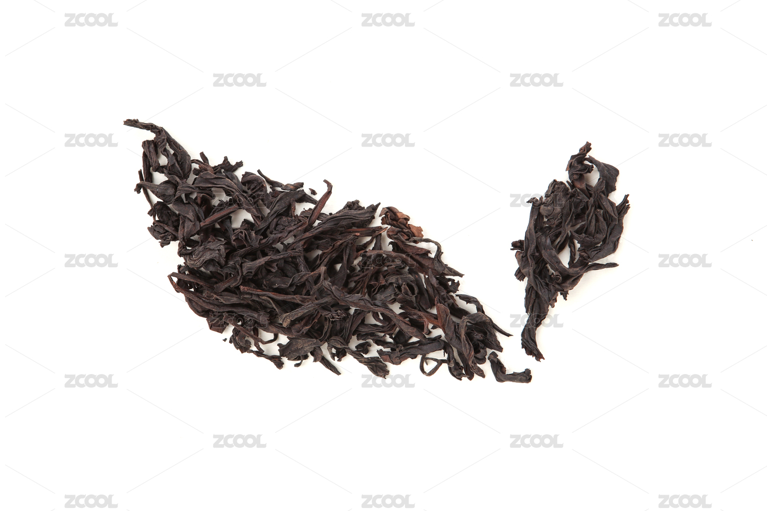 白色背景上一堆中国茶干茶散茶