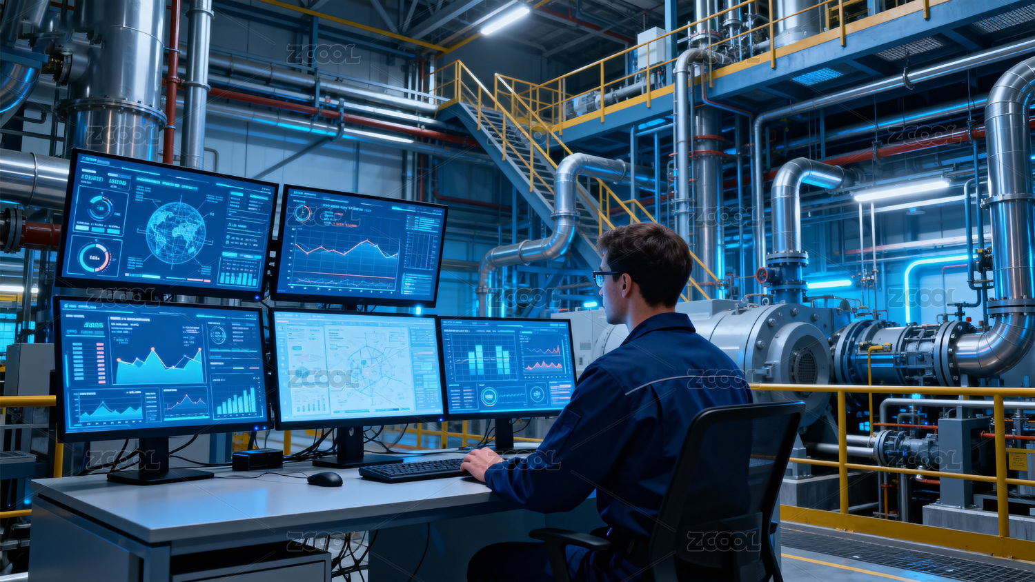 现代工厂控制室,工厂,控制室,监控室,电脑,大屏幕,电子设备,数控操作,电脑操控,电脑显示器