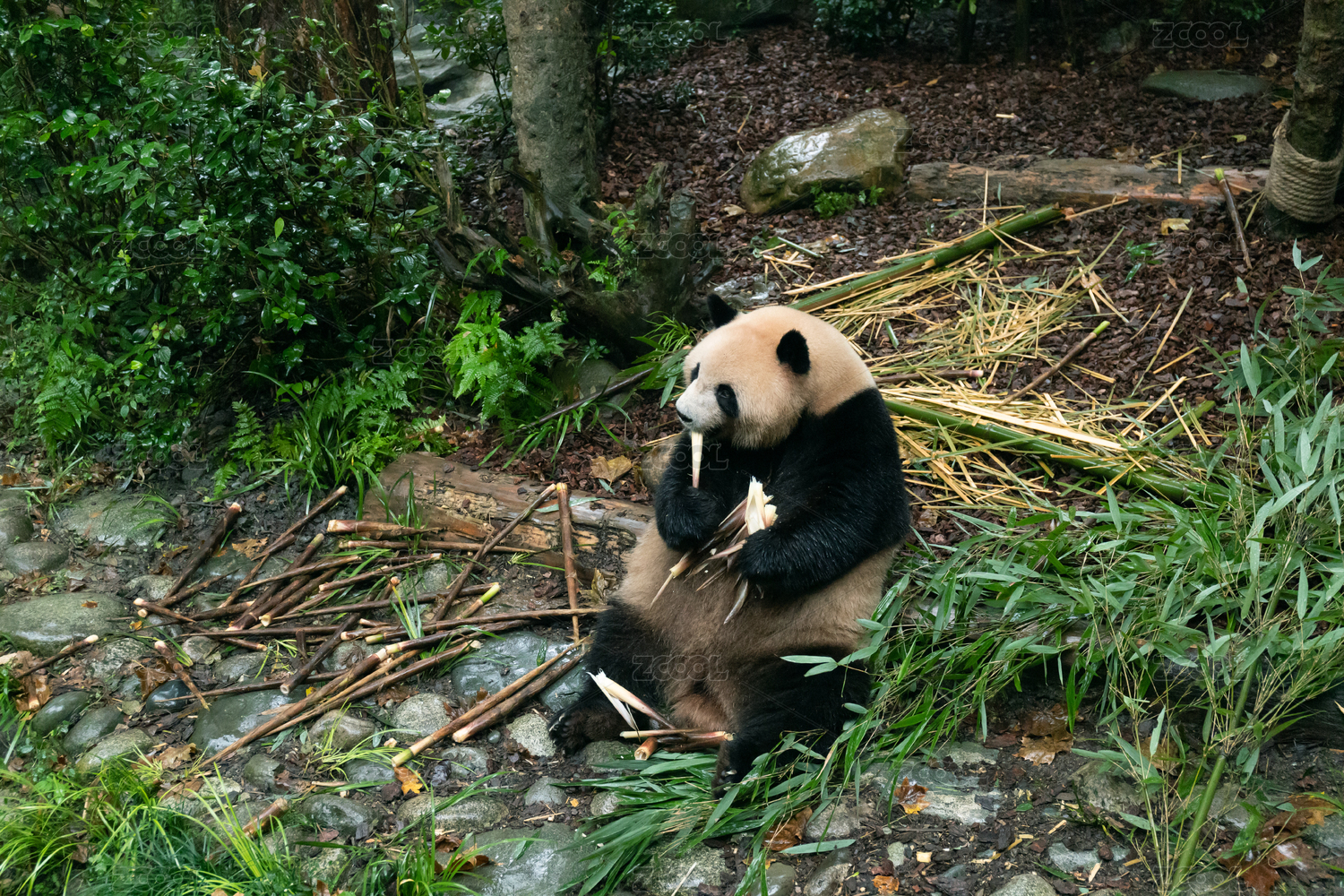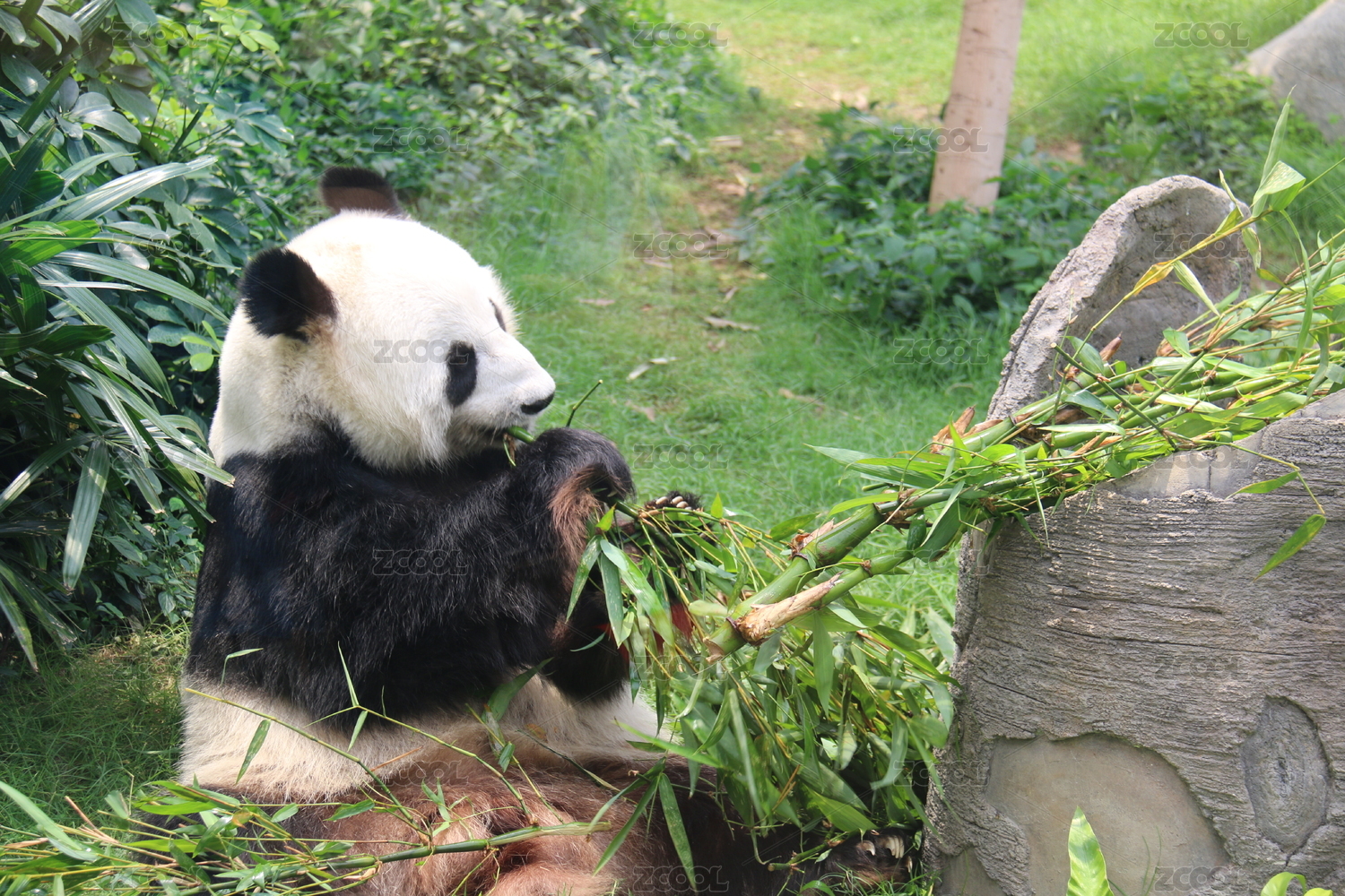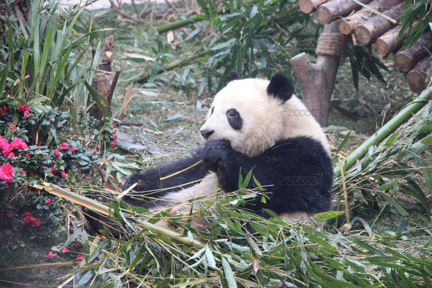 成都大熊猫繁育研究基地的大熊猫吃竹子过程