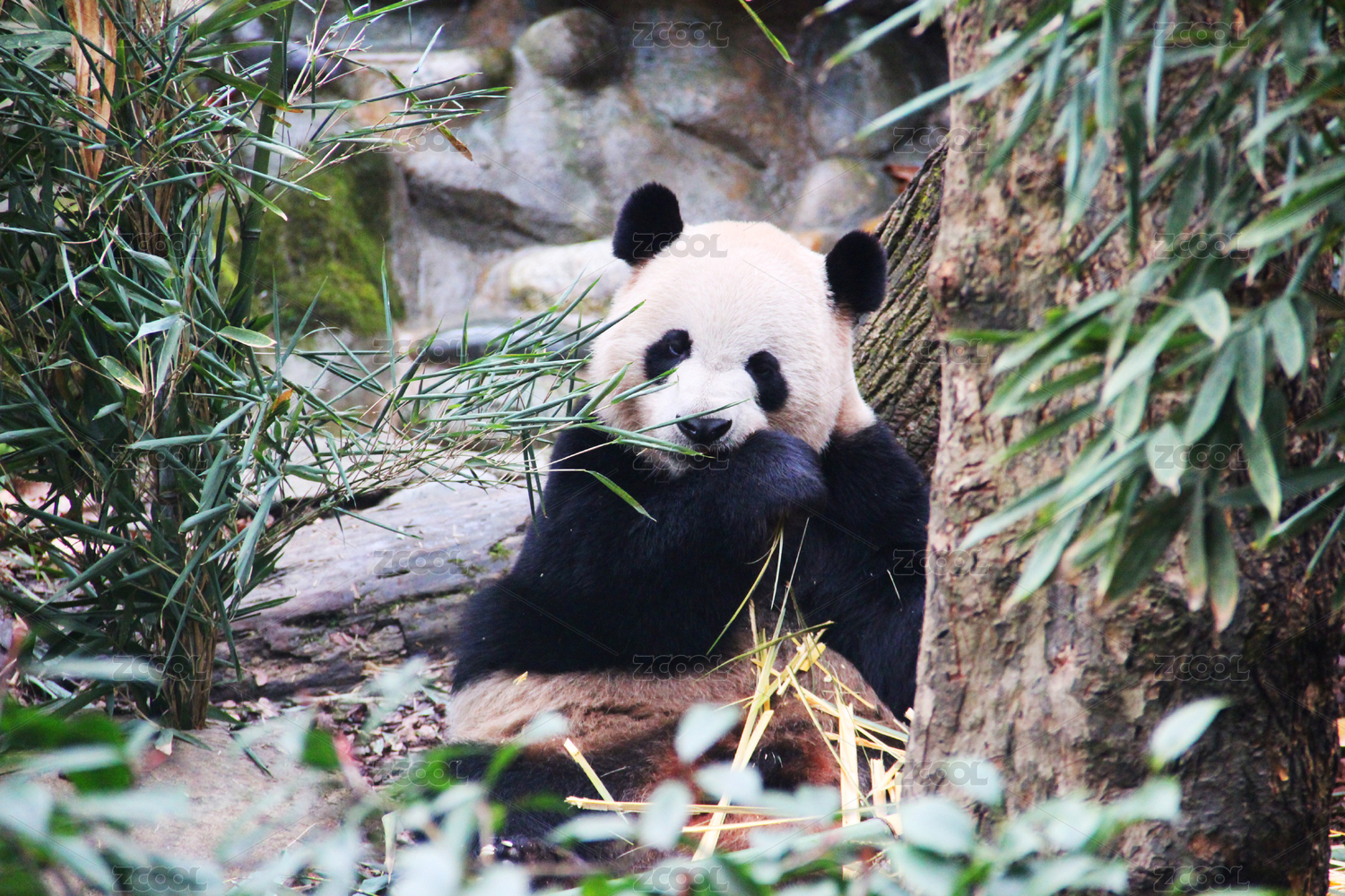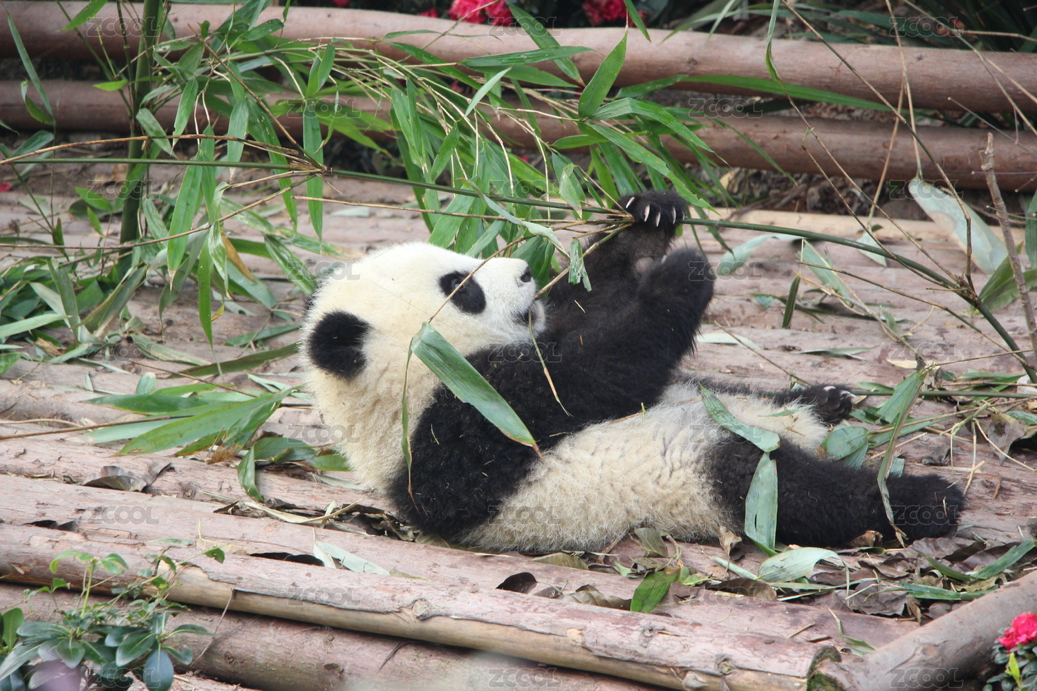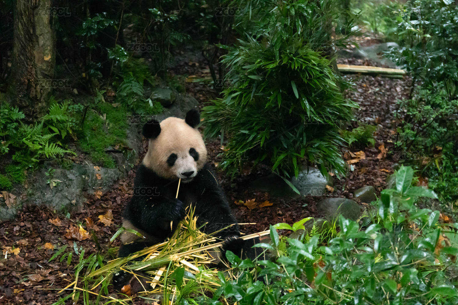 成都大熊猫繁育研究基地的大熊猫吃竹子过程