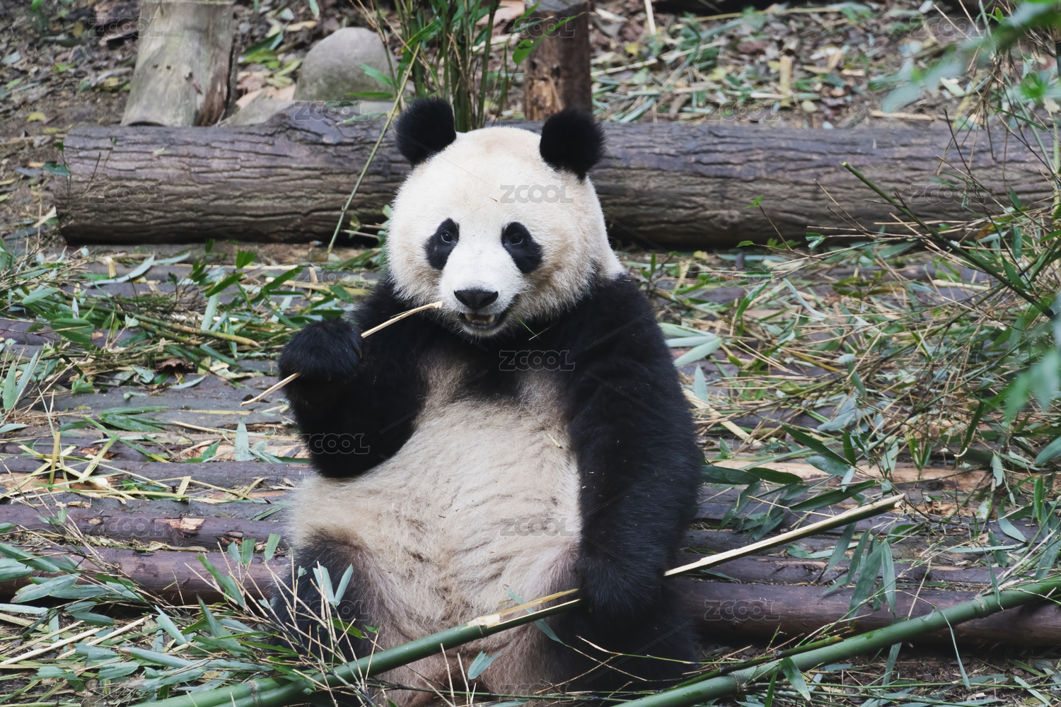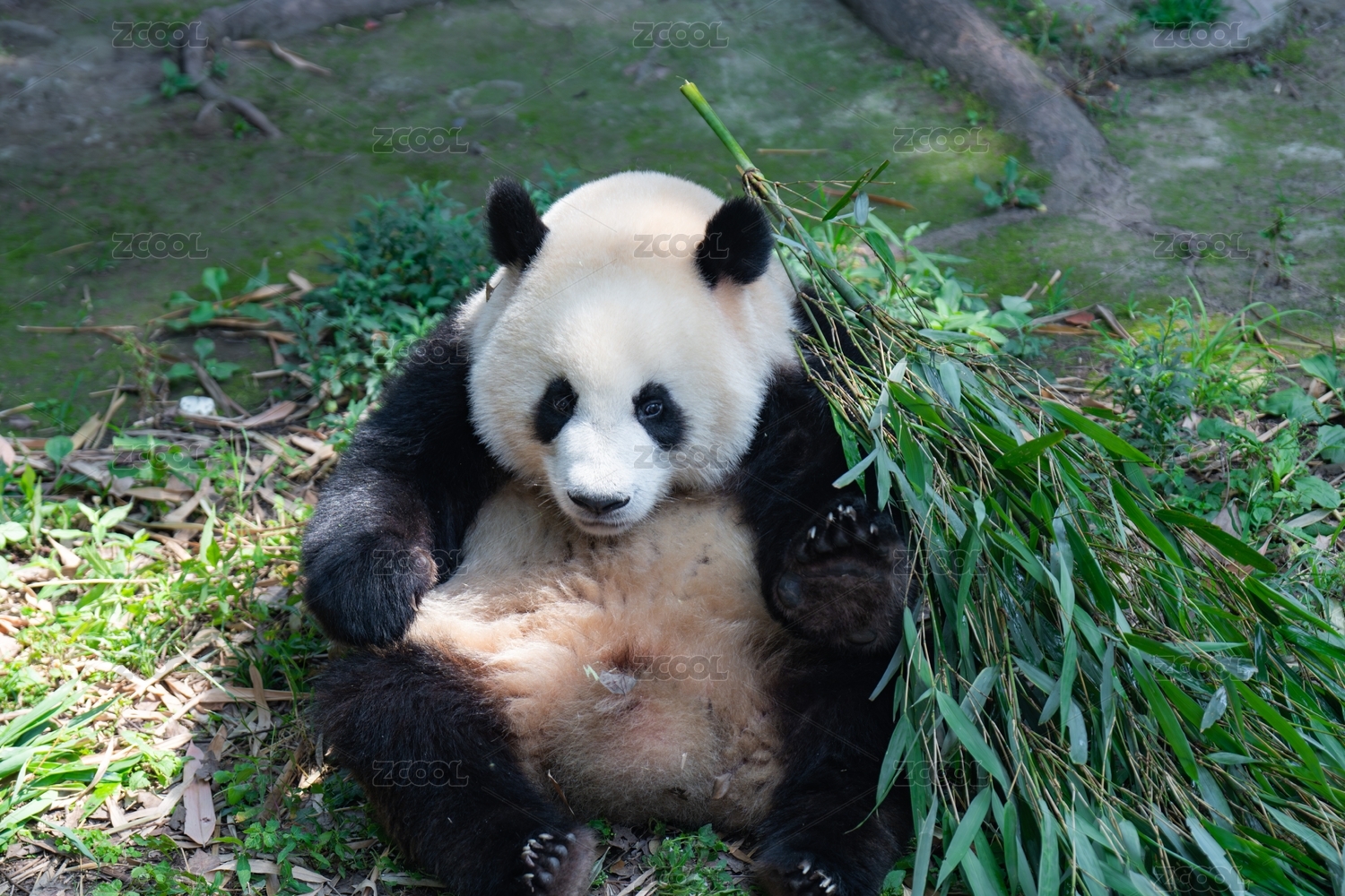 成都大熊猫基地 坐着吃竹子的可爱熊猫