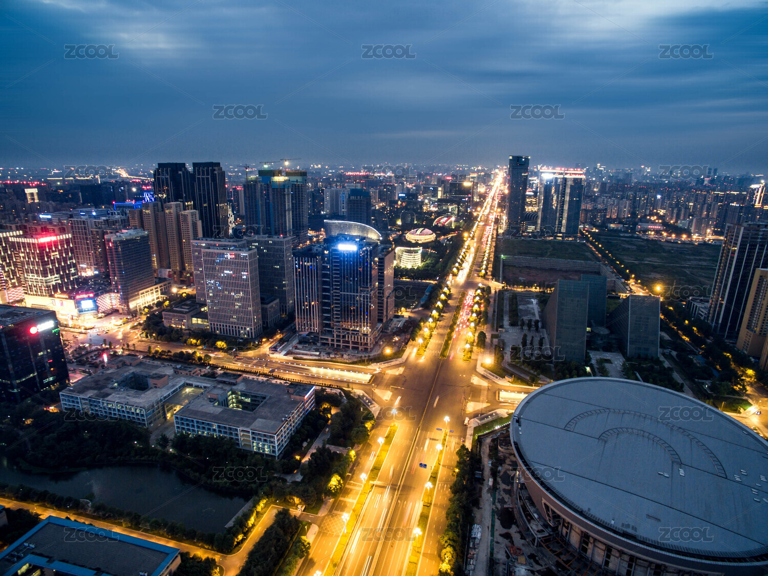 城市夜景,风光,广场,立交桥,俯瞰,现代建筑,高楼大厦,摩天大楼,CBD,商业区