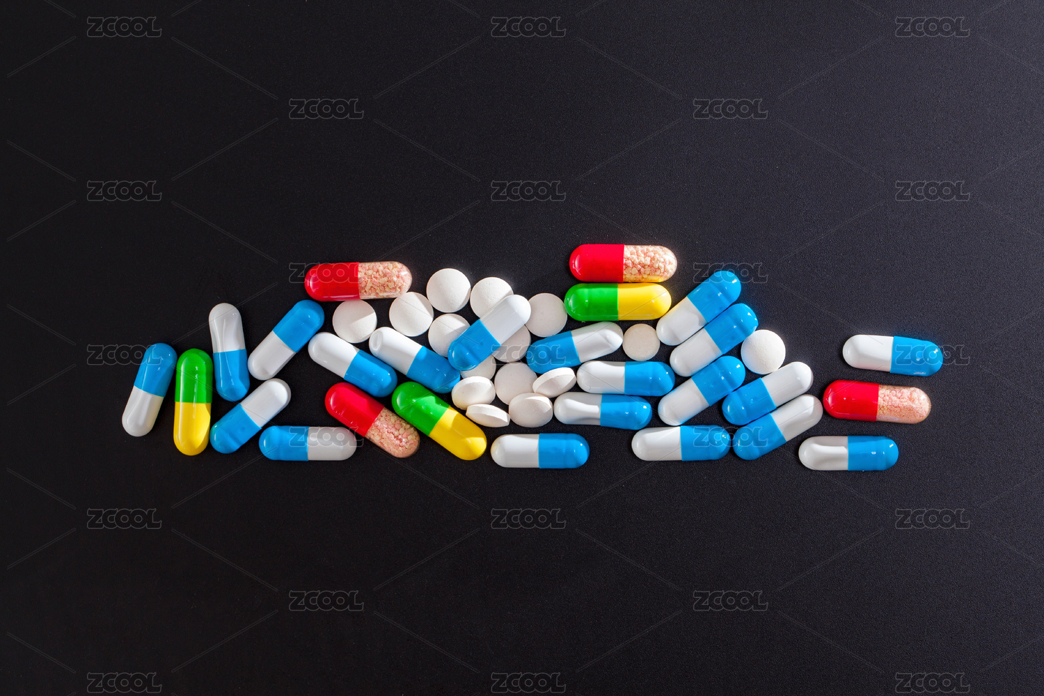 在蓝色背景上用于医疗治疗用中西药药丸胶囊