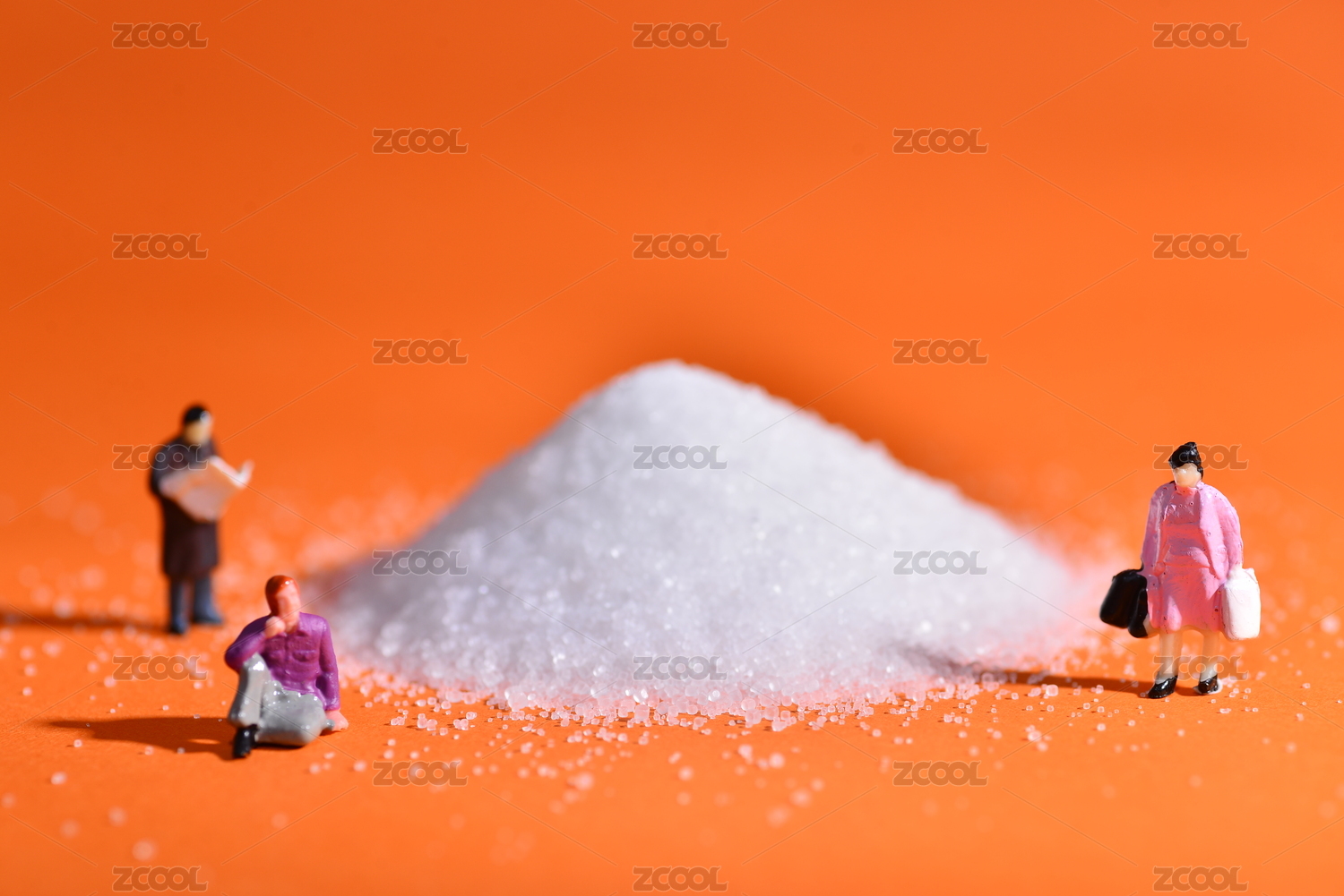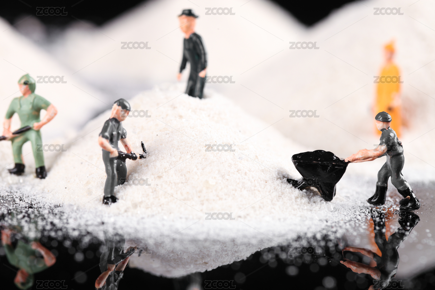 白糖上劳动的微缩人偶模型