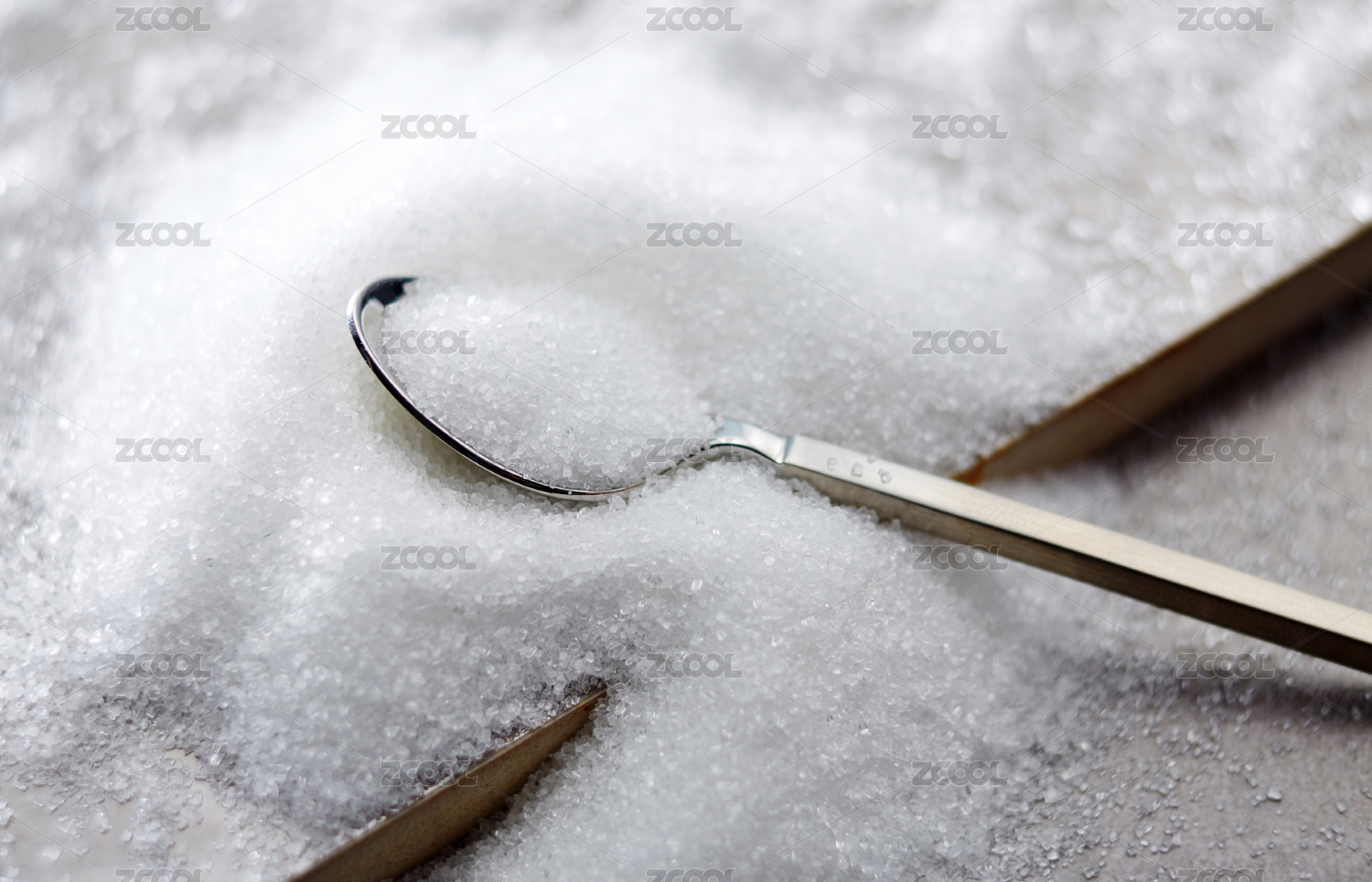 木勺上糖颗粒特写