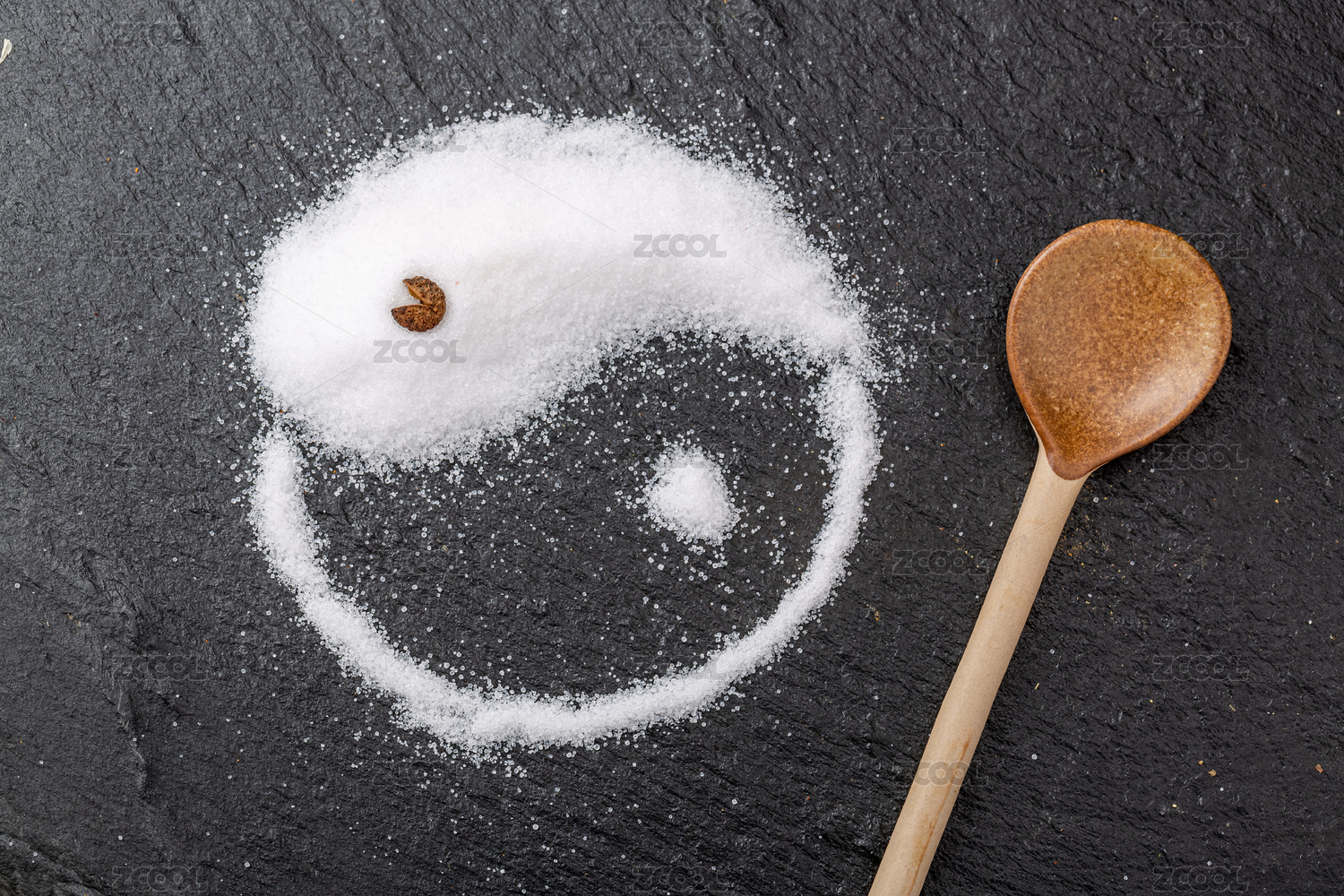 黑色石板上的白色食盐组合的太极简易图形