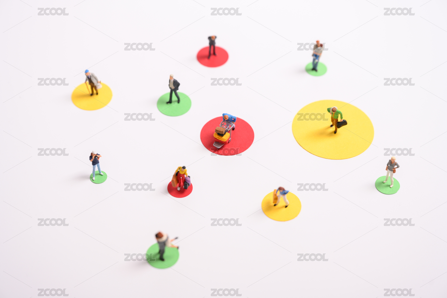 纯色背景上的微缩创意摄影关联与幕后联系
