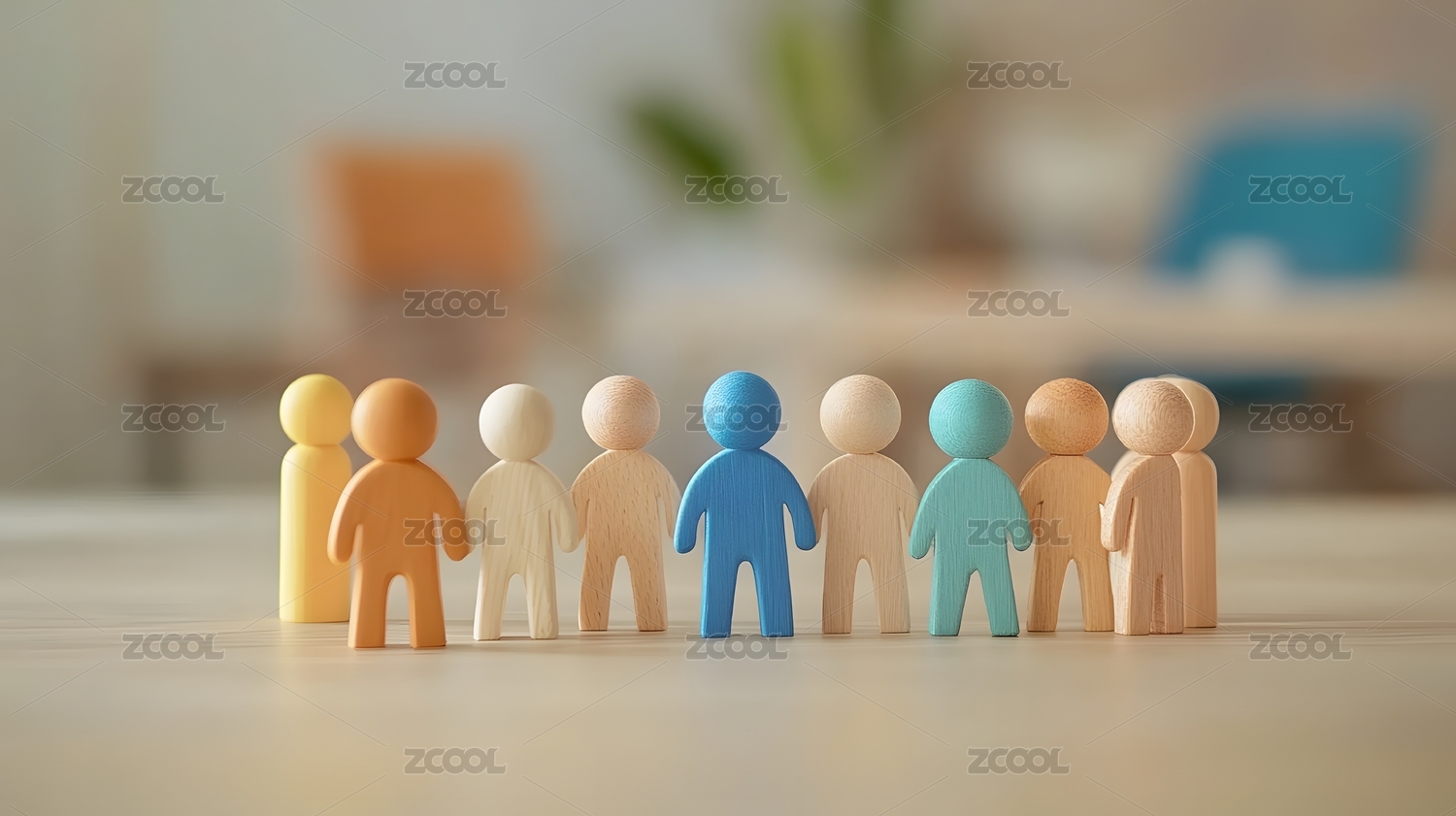微缩创意品字形堆叠的蓝色积木与人群