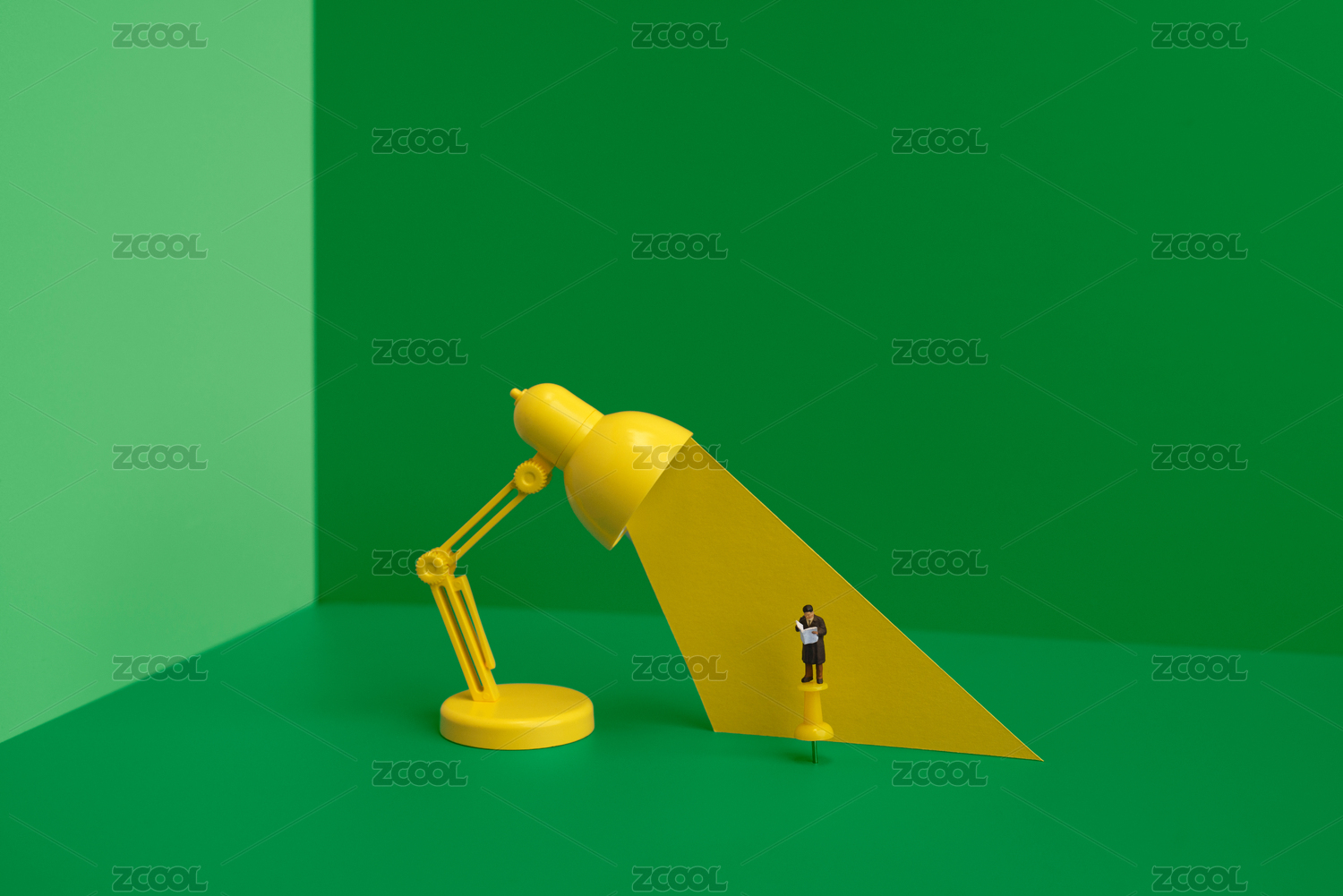 站在台灯光下看书学习的男士微缩创意静物照