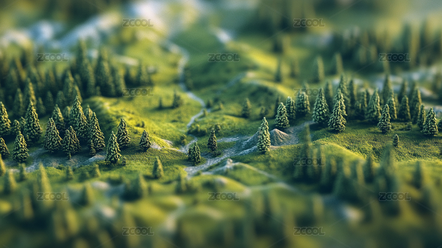 立体自然景观河流森林