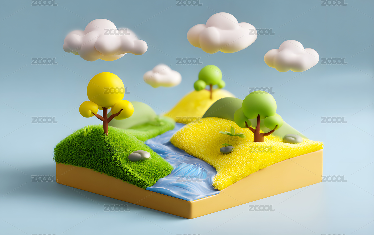 3D卡通微型森林岛屿